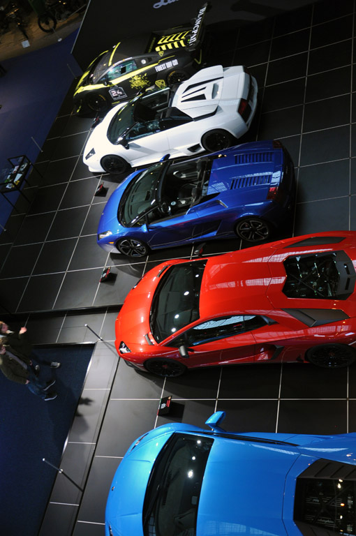A l'extérieur du Musée, une Lamborghini Gallardo annonçait la couleur. Alors que nous pénétrons à l'intérieur pour acheter les billets, cette superbe Lamborghini 350 GT accueille les visiteurs. Une fois cette étape passée, nous décidons d'aller directement à l'expostion, qui se situe à l'étage, au fond du musée. Une sorte de place de ville italienne y est reconstituée, avec des décors et des accessoires évoquant le pays. Nous passons devant cette Miura avant de passer tout de suite à la petite salle adjacente, avant qu'elle ne soit prise d'assaut par les visiteurs.
