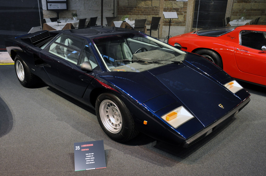 Nous revenons ensuite sur la "place". Ici un alignement de GT et sportives des années 70 : De Tomaso Mangusta, Lamborghini Countach LP 400, Bizzarrini 5300 GT et Iso Grifo.