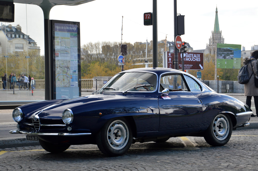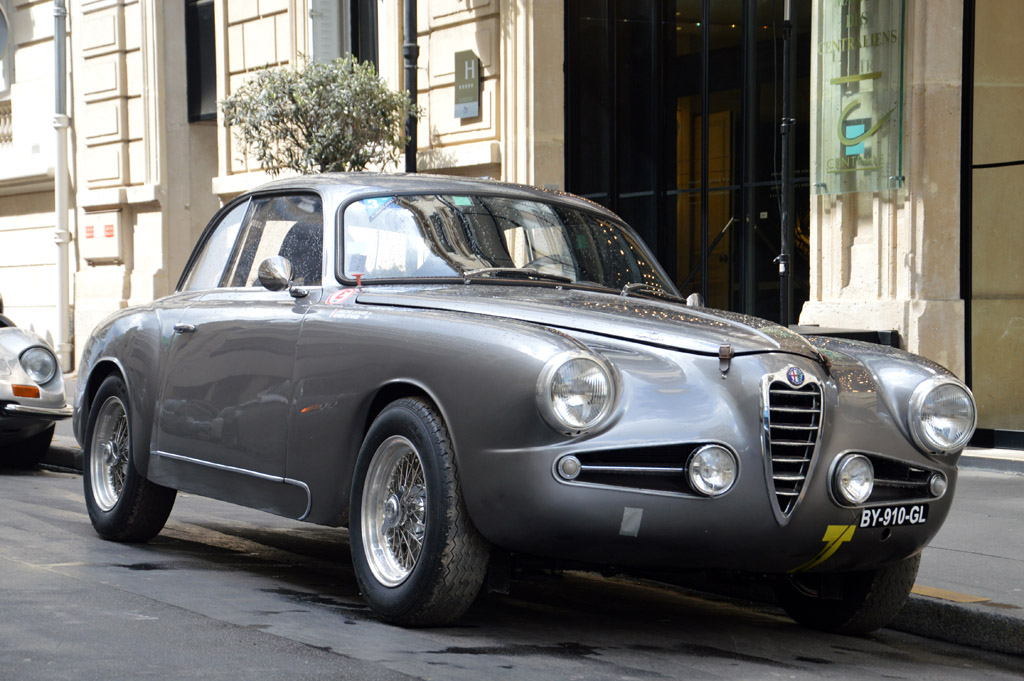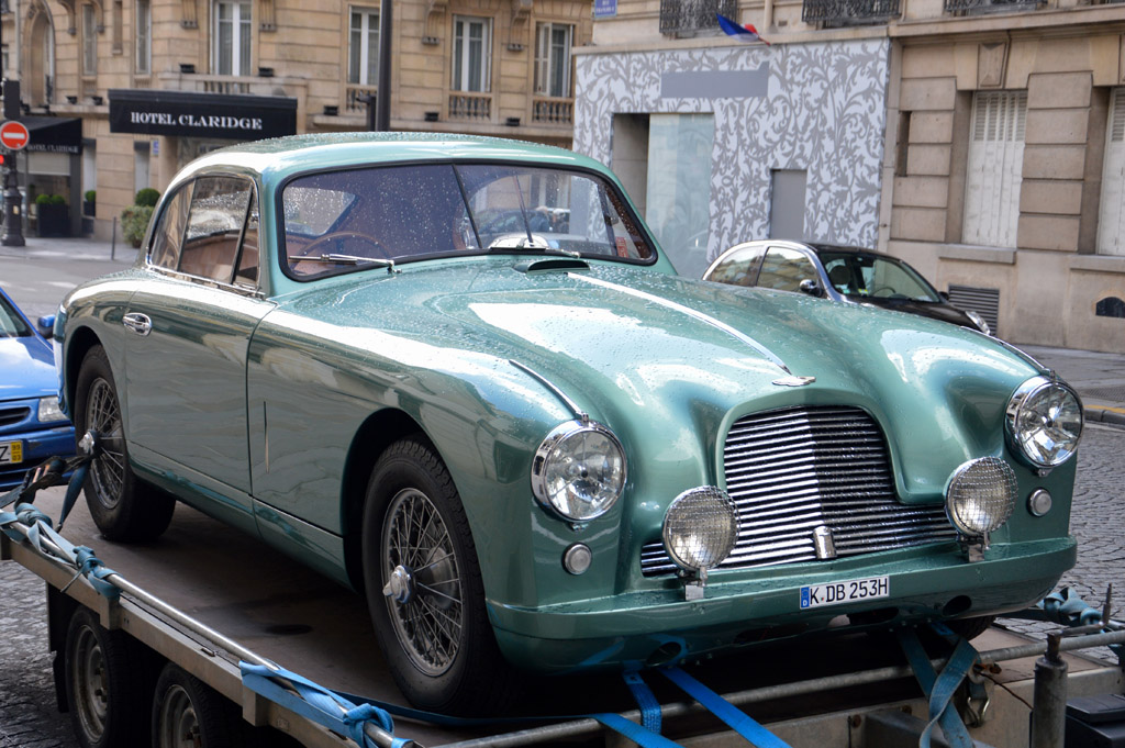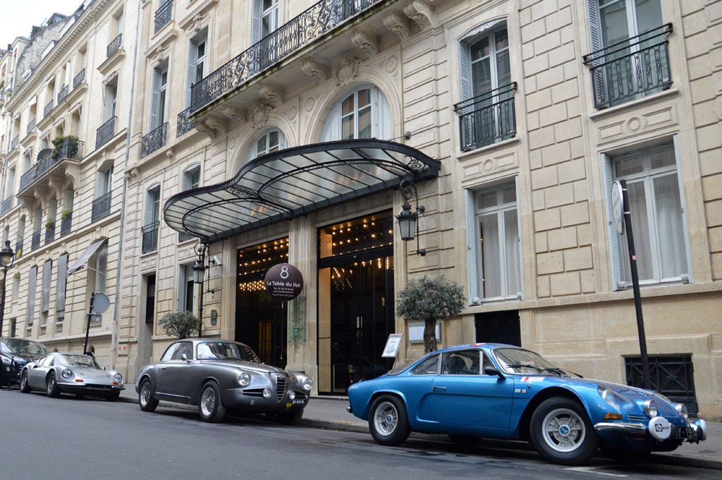 Sur le chemin du Grand Palais, je tombe sur quelques voitures de participants encore garées devant leurs hotels : Aston Martin DB2, Alfa Romeo 1900 SS ou Renault Alpine A110.