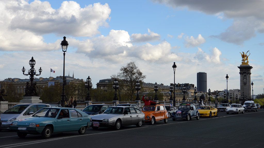 Je suis également tombé par hasard sur un cortège de "Touche pas à mon ancienne", qui manifestait contre l'interdiction des véhicules anciens dans le centre de Paris.