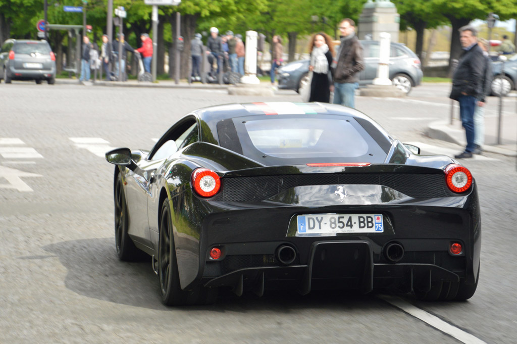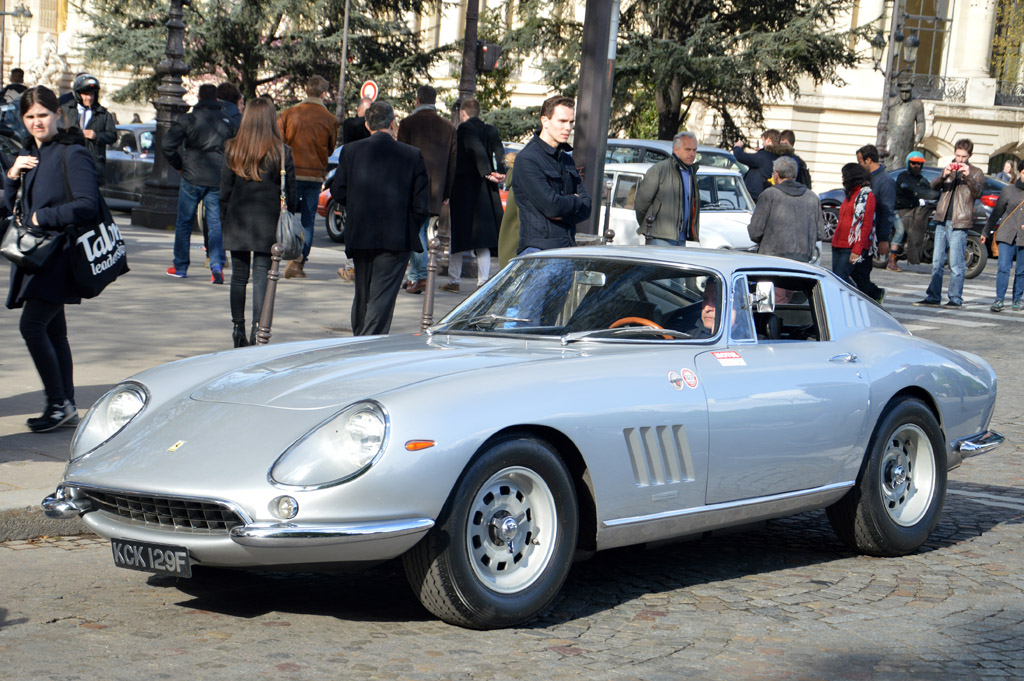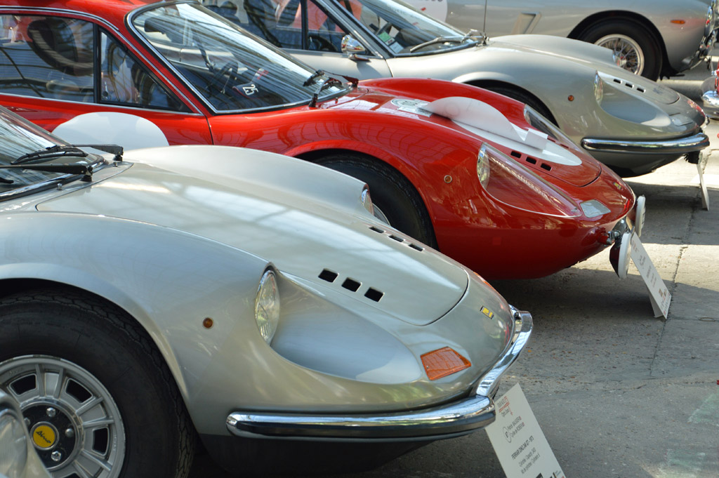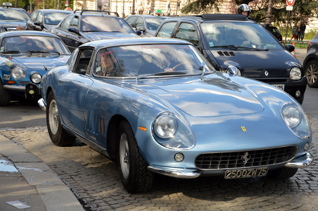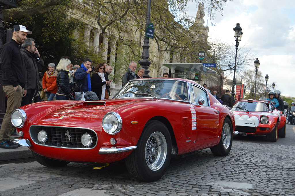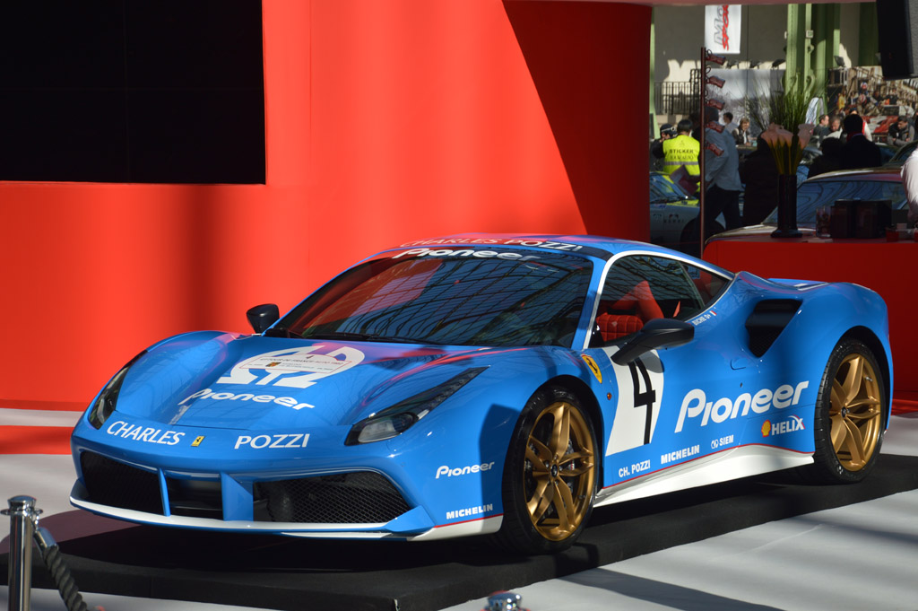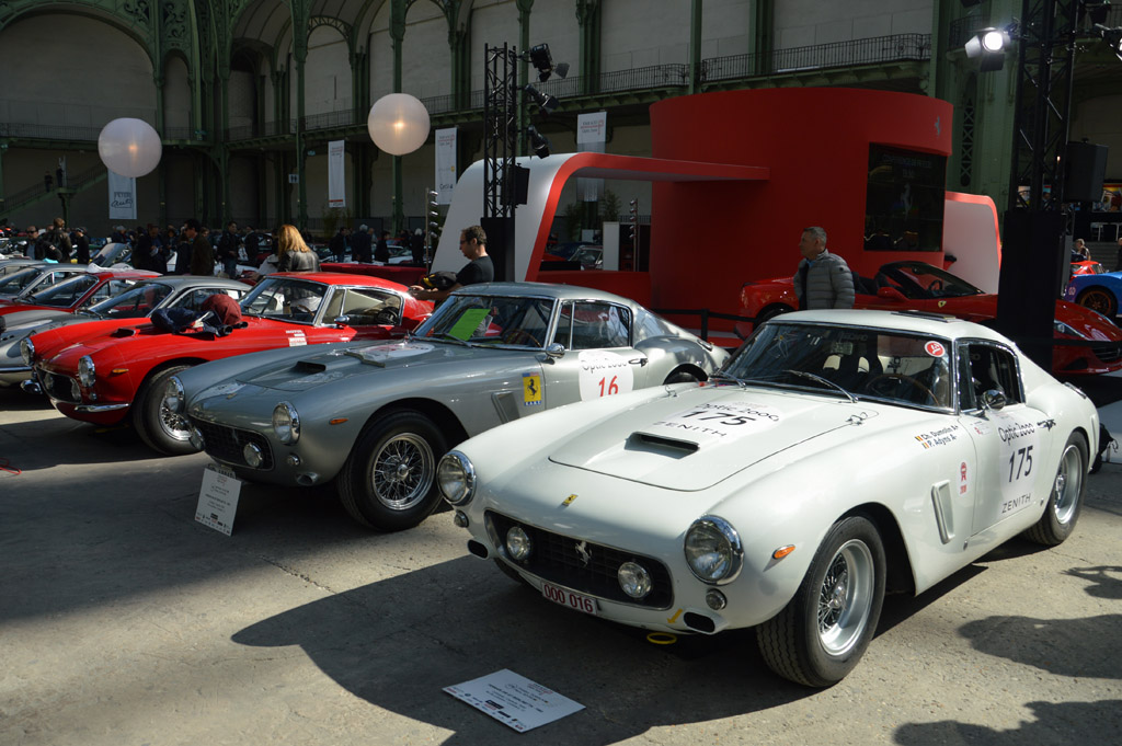 Le lendemain matin, retour au Grand Palais, pour cette fois visiter l'intérieur. Toutes les voitures y sont exposées au public avant le départ de demain. Elles y sont regroupées par marque, ici le stand Ferrari : 275, 250 GT SWB, 250 GT Lusso, 625 TF, 246 GT Dino ou cette 488 GTB dans une livrée historique.