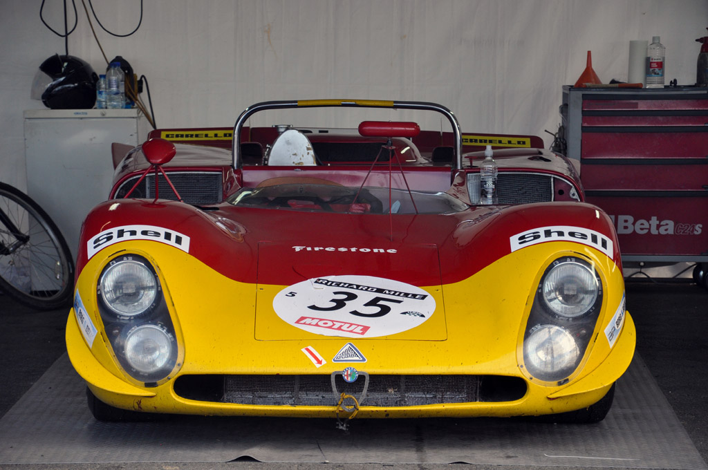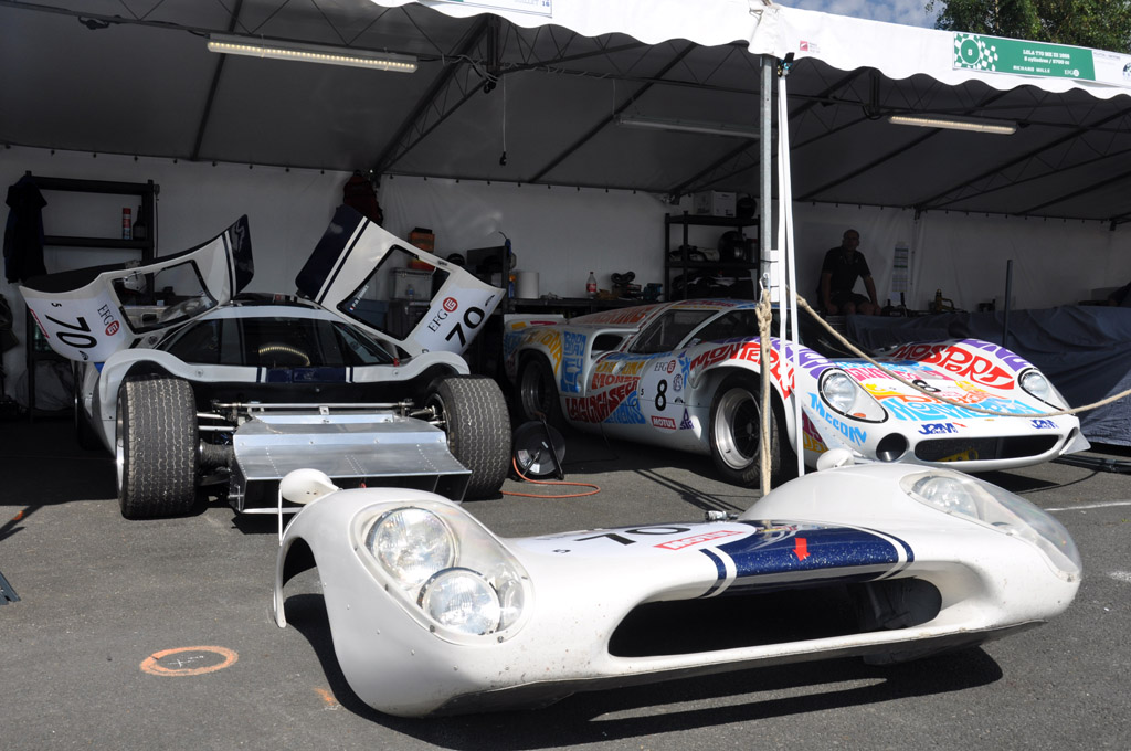 Nous passons ensuite aux paddock des différents plateaux. Tout d'abord, leplateau 5 regroupant les voitures ayant couru de 1966 à 1971 : Lola T70, Alfa Romeo Tipo 33/3, Matra 660, ou une autre Lola T70.