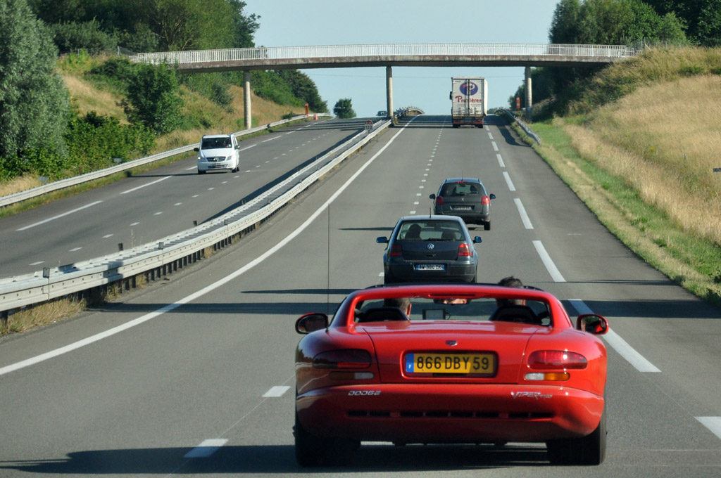 Ensuite, sur l'A28, ce sera un vrai festival de belles mécaniques. Entre autres : Triumph Stag, Fod GT40, Dodge Viper RT/10, Porsche 911...