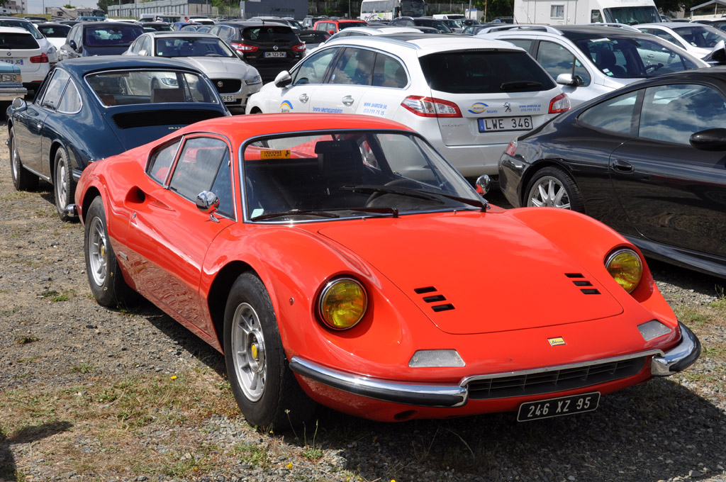 De retour au parking pour manger, c'est toujours autant le délire sur le parking : une belle série de Ferrari : F40, 430, 250 GT série I, 246 GT Dino,...