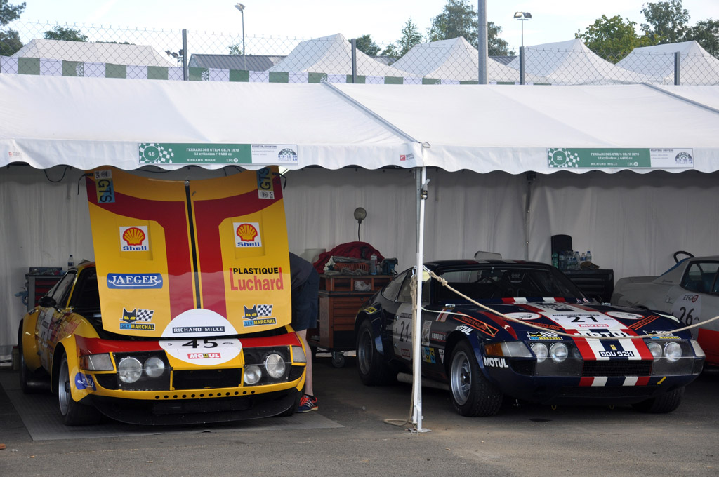 Alors que le plateau 1 se met ensuite en place, nous refaisons un tour du côté des paddocks. Nouveauté au milieu du plateau 5, cette Ford GT ayant couru au Mans cette année, accompagnée d'une GT40 Mk II orginale, aux couleurs du vainqueur de 1966. Les autres voitures, ayant couru, ne sont plus aussi rutilantes et portent les traces de la course.