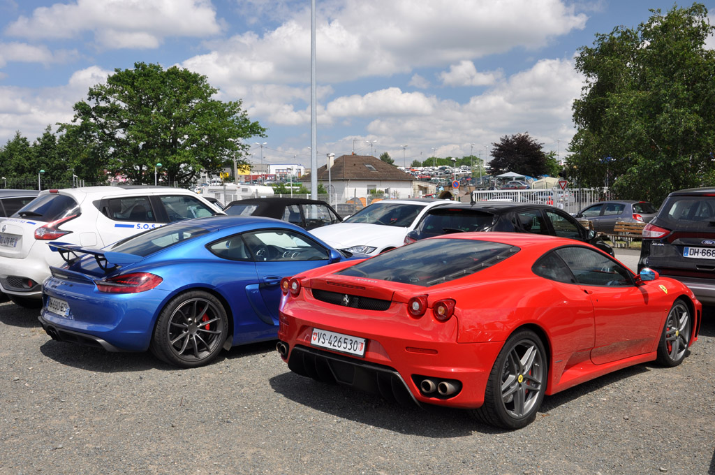 Arrivé sur le parking, c'est la folie : au milieu des voitures des spectateurs sont glissés une multitudes du supercars en tout genre à commencer par cette exceptionnelle Porsche Carrera GT. Parmi la bonne centaine de voitures présentes, je retiendrai apr exemple cette Cayman GT4, cette GT3, cette Wiesmann MF4 GT, cette Ferrari 458, cette Lamborghini Jalpa, cette Aston Martin V12 Vantage, cette DB4 Volante ou encore cette Nissan GTR.
