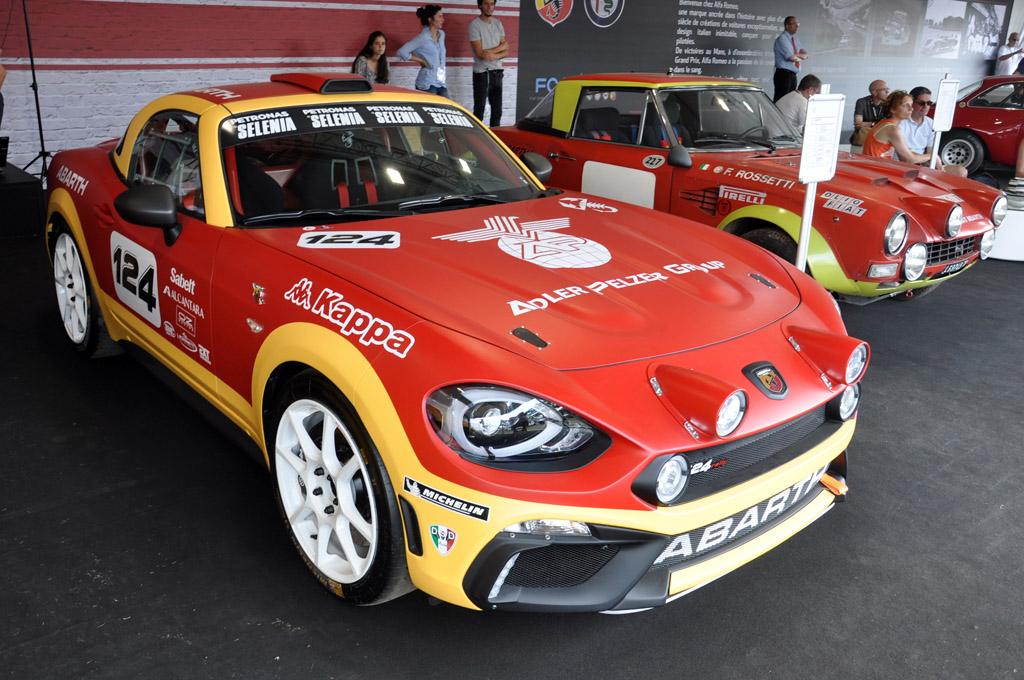 De retour dans le village, nous passons sur le stand Fiat-Alfa Romeo pour y voir entre autres cette 124 Abarth, cette GTAm ou cette Tipo 33.