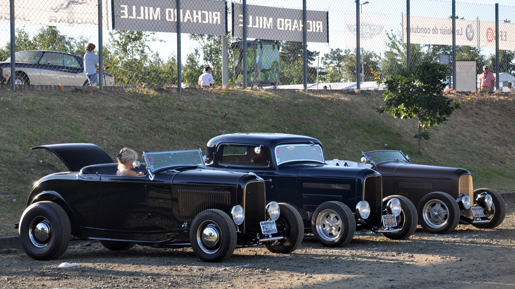 De nombreuses voitures passent au milieu de tout cela : concurrents qui quitte le circuit ou collectionneurs qui repartent.
