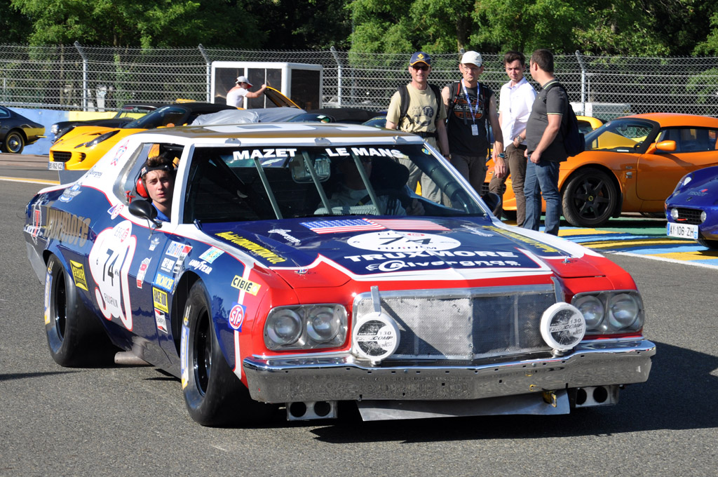 Nous voyons également entre-temps le plateau 6 se rendre sur la pré-grille. Même si cette Ford Torino peut paraître incongrue au milieu de ces Porsche 935, BMW M1 et autre Ferrari 512 BBLM, son bruit assourdissant ne la laisse pas passer inaperçue !