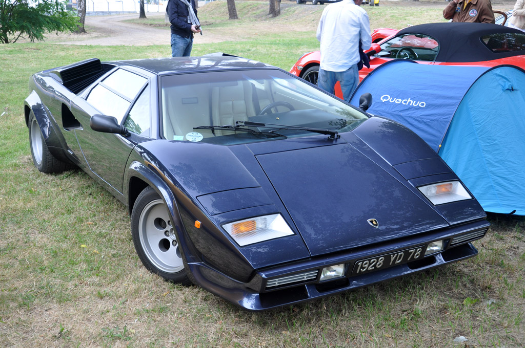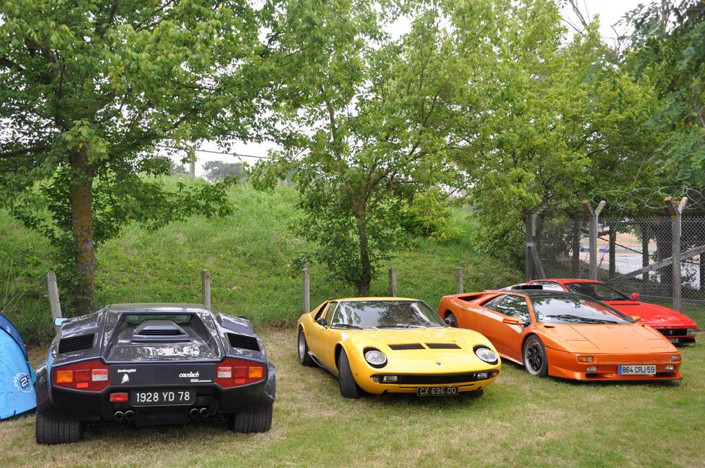 Nous tombons ensuite sur un très bel alignement : Lamborghini Countach, Miura Diablo et Ferrari Testarossa !