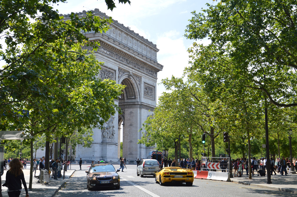 Je continue de remonter en utilisant les routes parallèles, l'accès par l'Arc de Triomphe étant condamné. En chemin je croiserai cette magnifique Lamborghini Diablo VT Roadster.