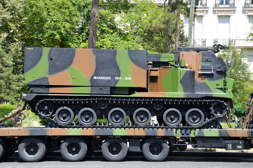 Autres gros véhicules : VAB, Caesar, MLRS ou AMX-30 dépanneur sur porte-char.
