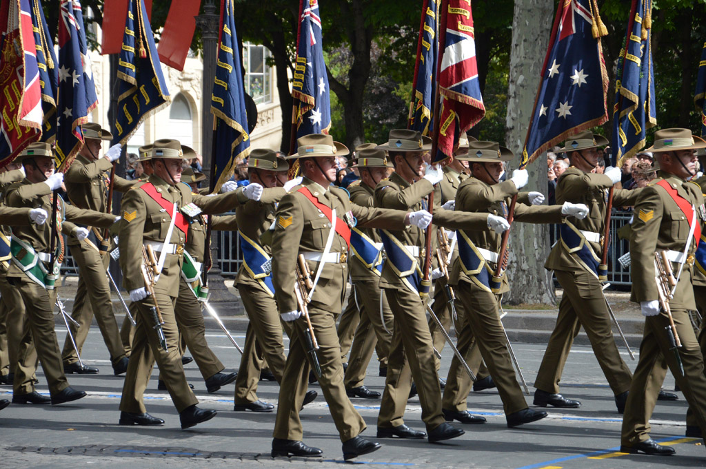 Les troupes à pieds enchaînent. Fort remarqués ces Néo-Zélandais en tenus traditionnelle. La légion étrangère, elle, marche toujours à son rythme.
