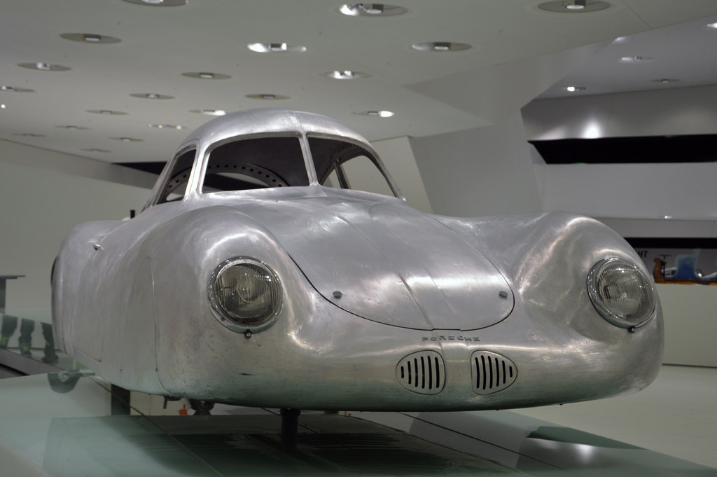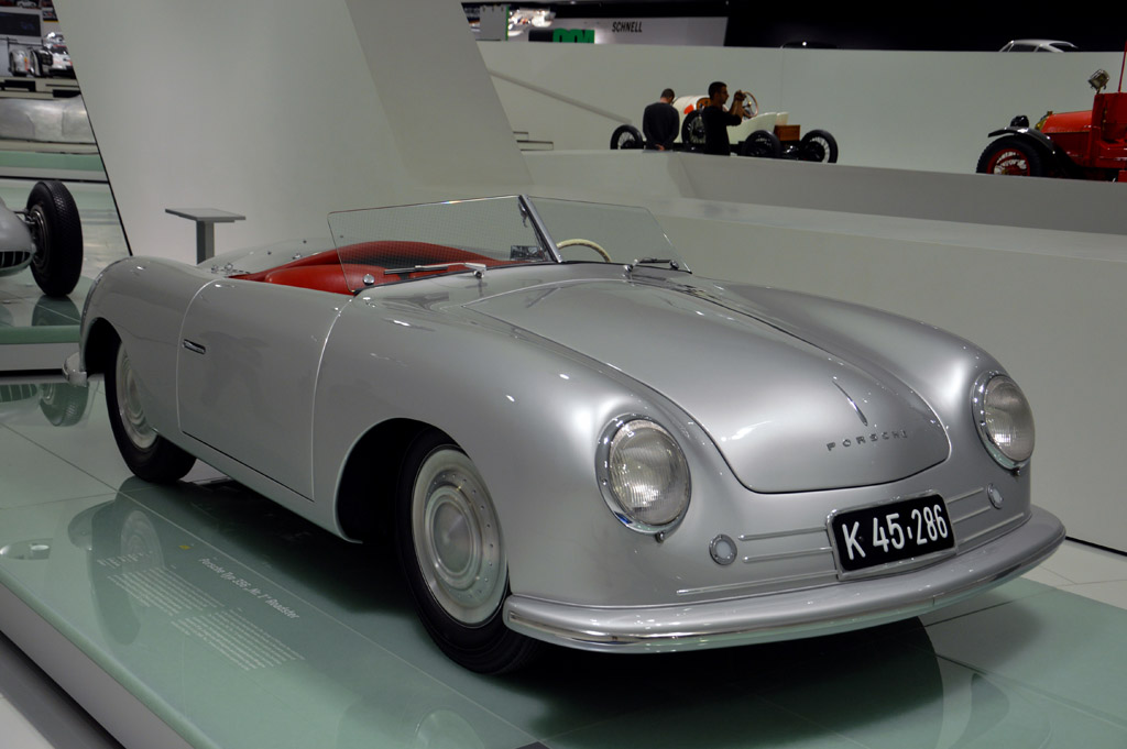 On continue dans la chronologie avec la Type 64, devéloppée en 1939, sur la base de la KdF. C'est la première voiture à porter le nom de Porsche, mais la guerre mettra fin au projet. Après la Seconde guerre mondiale, alors que Ferdinand est prison pour collaboration, le fils de Ferdinant, Ferry reprend la direction de l'entreprise. Ce prototype Type 360 construit en 1947 pour Cisitalia illustre donc la sortie de la guerre. Finalement, en 1948 sortira la première véritable Porsche de l'histoire, la 356, dont voici ici le prototype.