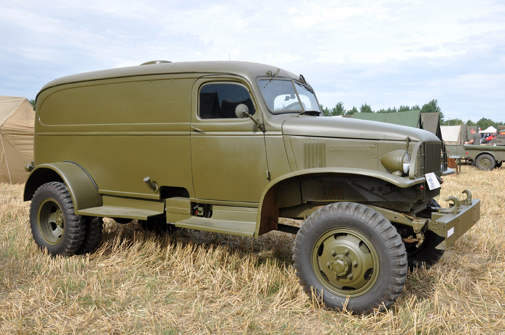 On trouve également de beaux véhicules plus légers comme ce GMC CCKW 352 et ce rare Chevrolet K51 Panel.