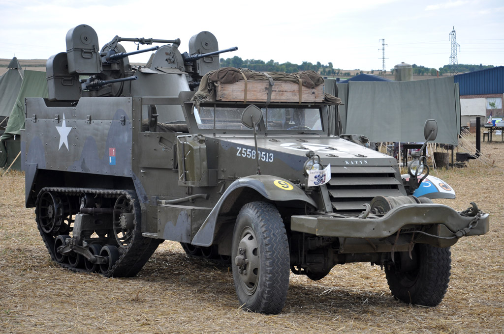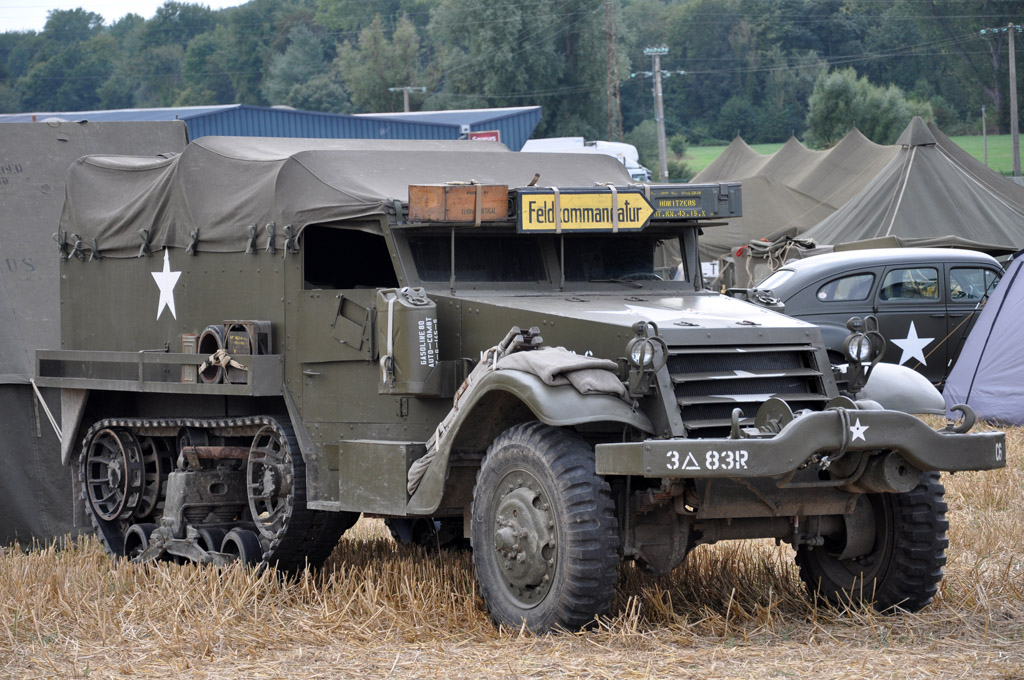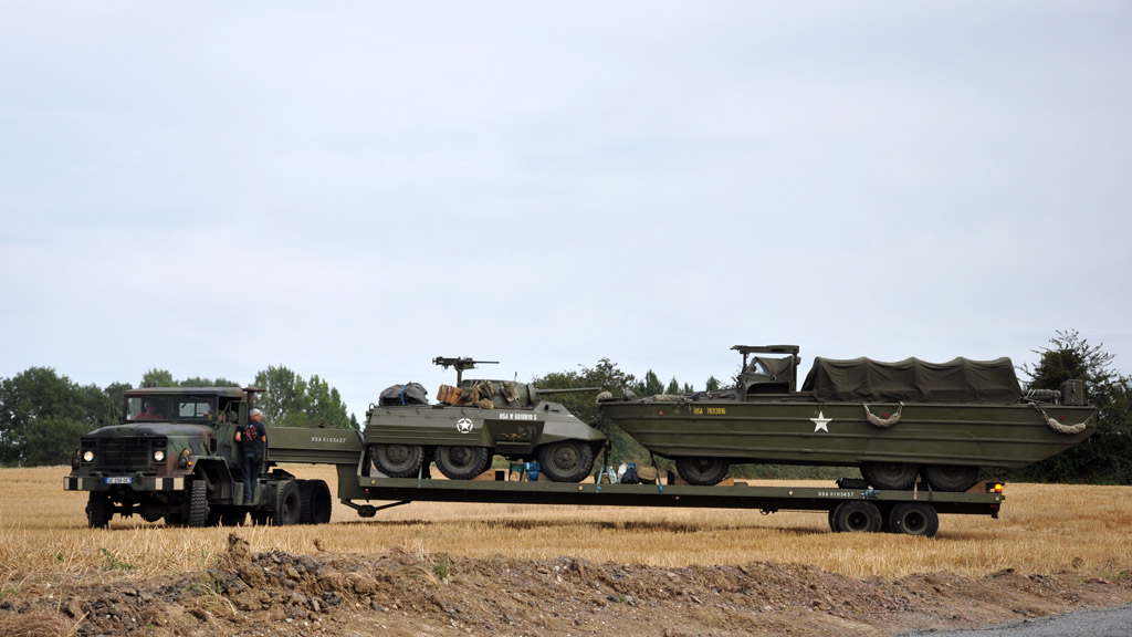Autres véhicules lourds avec ces Half-Tracks M3 et M16, ainsi que cet attelage constitué d'un M931 tractant une Duck et une Ford M8.