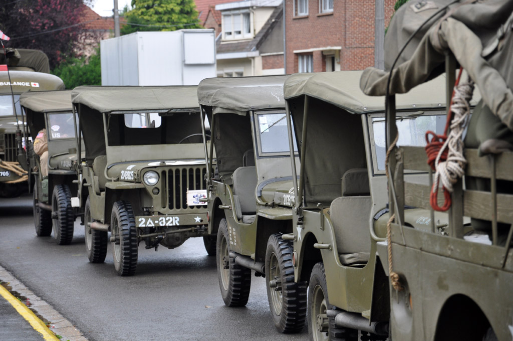 Le dimanche matin, nous nous rendons au traditionnel défilé dans les rues de la ville de Souchez. Et comme d'habitude, nous nous mettons au niveau où les véhicules se rassemblent avant le défilé pour éviter le monde. On y trouve donc de tout, de la Jeep au char d'assaut en passant par de très gros camions dépanneurs, amphibie ou récupérateurs de chars.