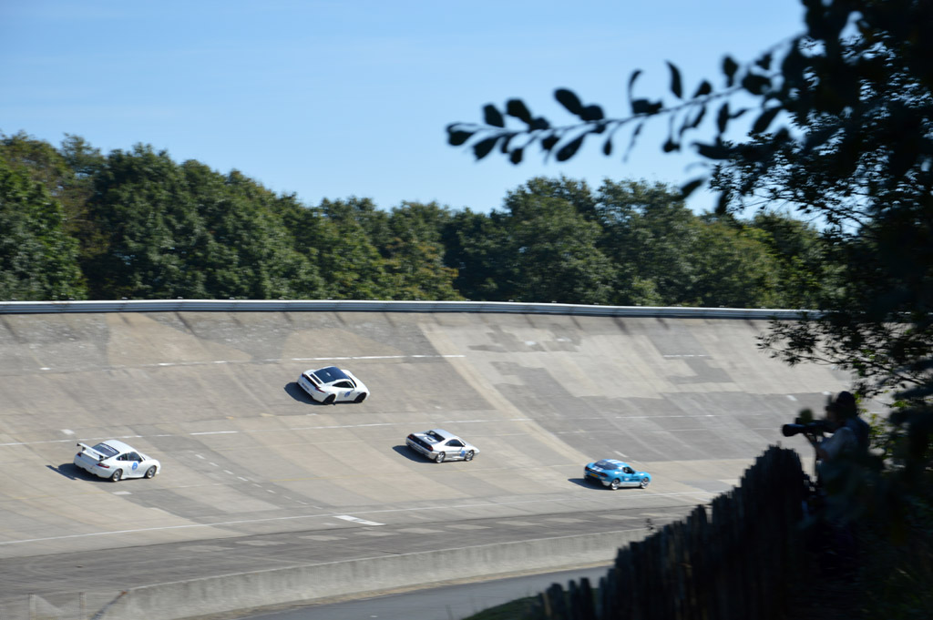 Puis vient le tour des GT : Mini, réplique de Ferrari 330 P4, Porsche 911 GT3 Cup, Saleen S7R, Shelby GT350, Porsche 911 Carrera RSR,... Ce fût l'un des plateau les plus réjouissants. Je ne m'y étais pas trompé, le bruit de la Maserati et de la Saleen est grandiose ! Voir monter les voitures assez haut sur l'anneau est également très impressionant.