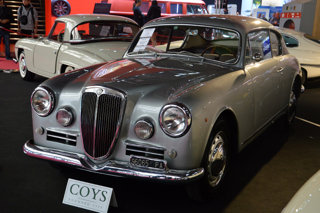 Une vente aux enchères de voitures anciennes était organisée au sein du salon par la maison d'enchères Coy. Une centaine de modèles étaient rassemblés dans deux pavillons différents, ici : Lancia Aurelia, Jaguar Type E, Aston Martin DB5, Ferrari 246 GT Dino ou Cadillac Fleetwoord de 1931.
