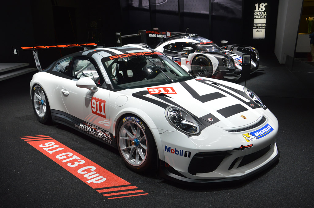 Chez Porsche pas grand chose à voir à part la dernière Panamera. Deux modèles de compétition étaient présent : 911 GT3 Cup et 919.