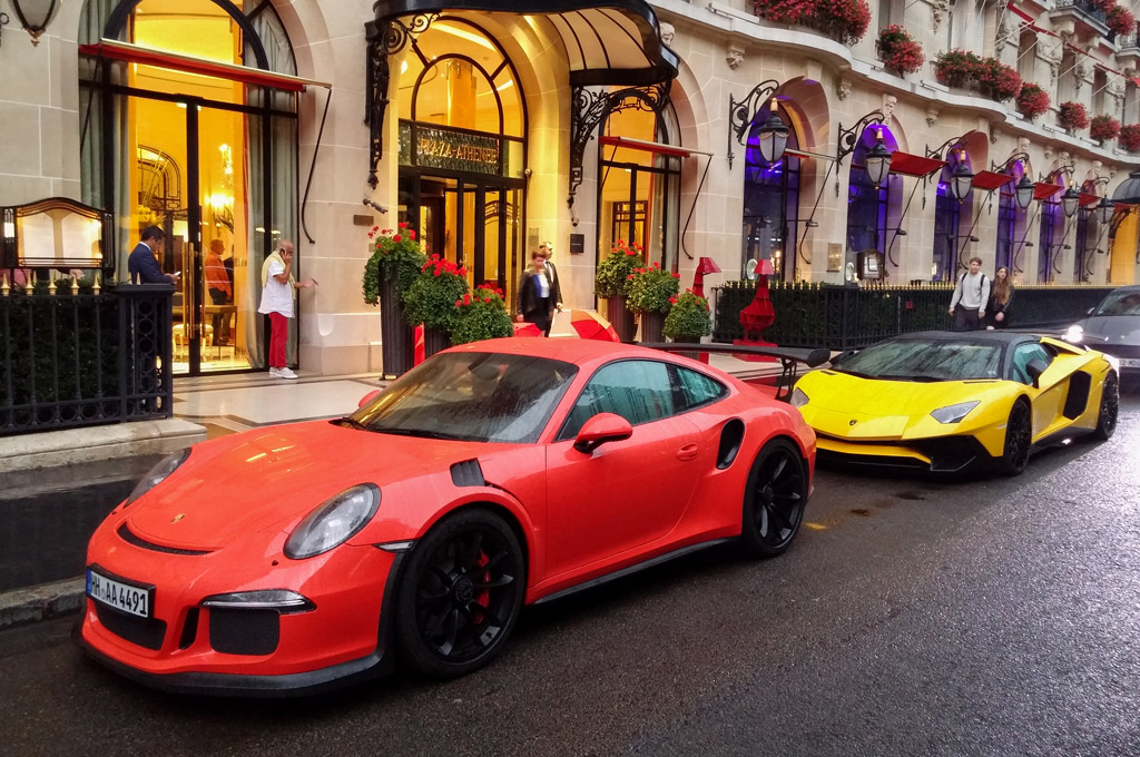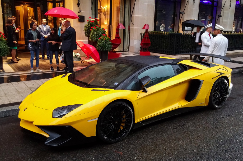 Il y toujours quelque chose à voir devant les hôtels de luxe; ce jour là, Bentley Continental GTC préparée par Mansory et Lamborghini Aventador LP-900 préparée par DMC et revendiquée à 900 chevaux.