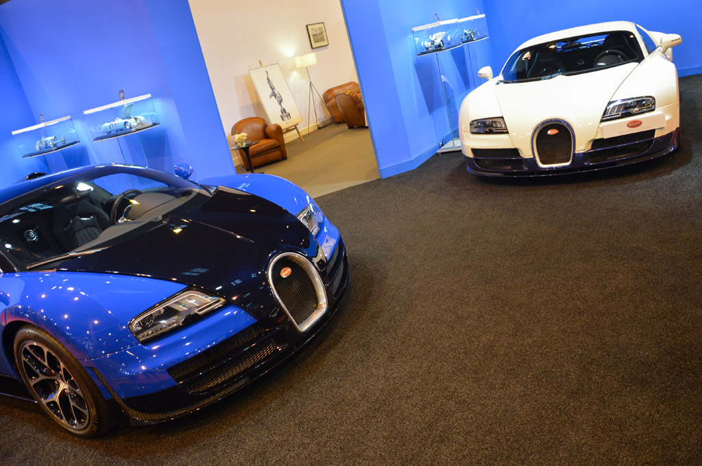 Un peu plus loin, un stand mettait à l'honneur Bugatti et Bentley, avec notamment une des trois Bugatti Atlantique (celle qui fût reconstruite après un accident), une Type 59, une Type 54, une Type 35, et en face, ces deux Veyron, une Supersport et une Grand Sport Vitesse, affichait la descendance.