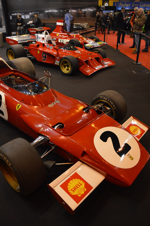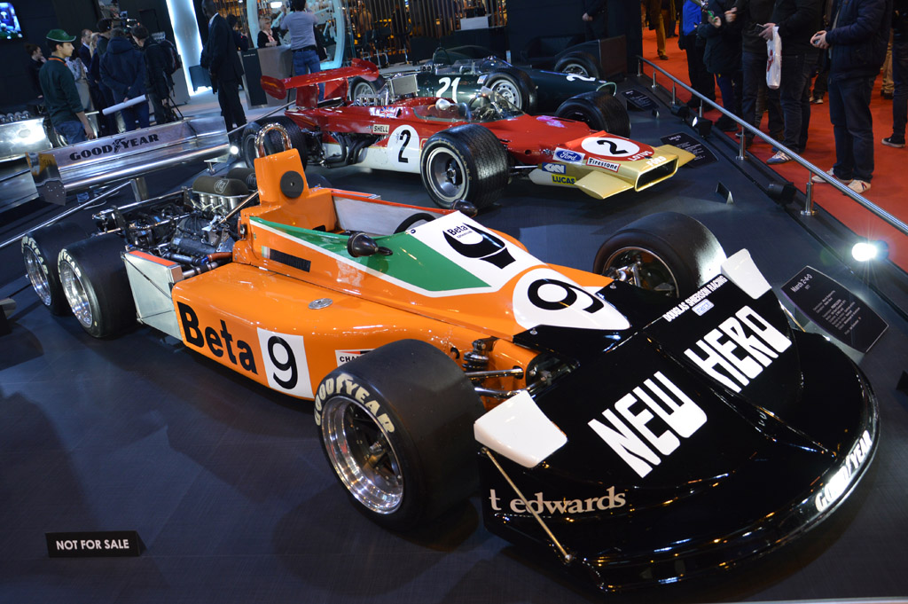 Encore une exposition spéciale, cette fois consacrée aux F1 extraordinaires, comme cette Cosworth à 4 roues motrices, ces Tyrell P34 et March 2-4-0 à 6 roues. En face, un stand avait regroupé une demi-douzaine de Formule 1 Ferrari.