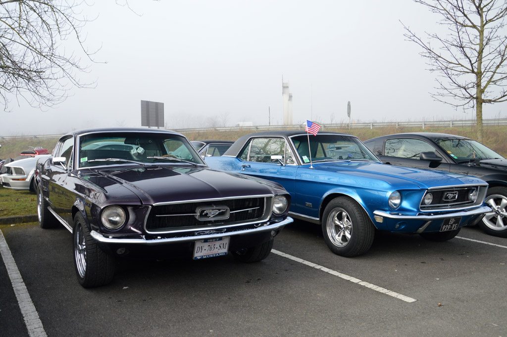 Le meeting étant visiblement organisé par le forum Mustang Passion, les Ford Mustang étaient évidemment nombreuses, de la première à la dernière génération.