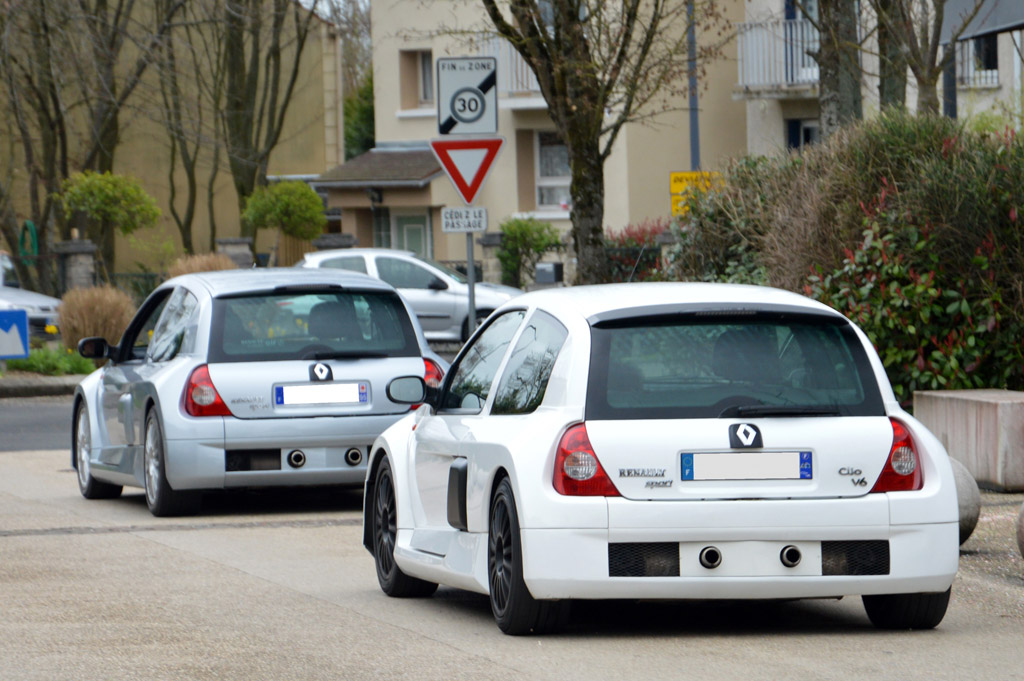 Alors que j'arrivais, ce duo de Renault Clio V6 repartait.