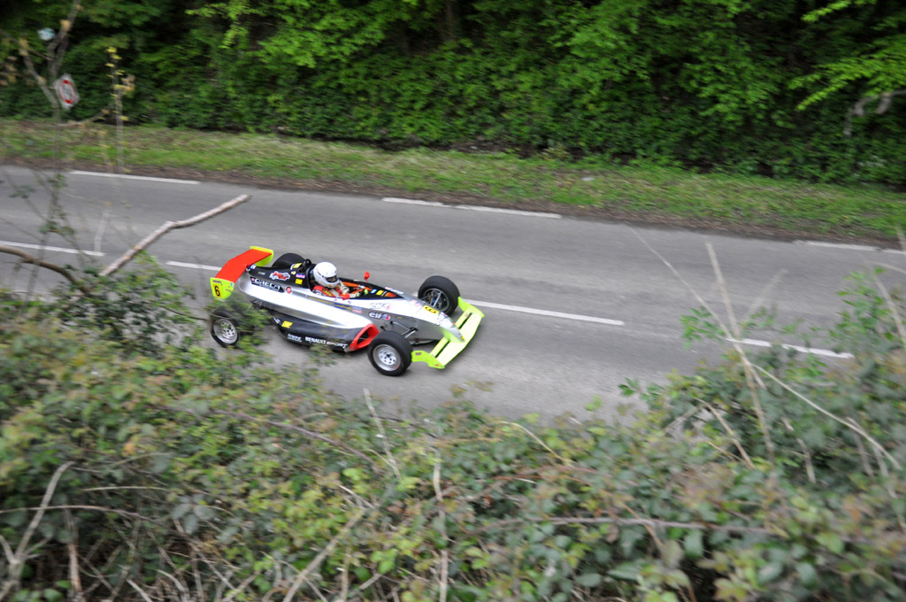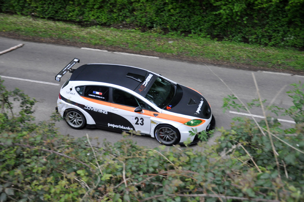 Alors que nous arrivons au centre du village, plusieurs voitures reviennent de leur course. Les types sont multiples : Seat Leon de course, dérivée d'une voiture de monsieur-tout-le-monde, monoplace ou encore ce prototype BRC équipé d'un moteur de moto Suzuki.