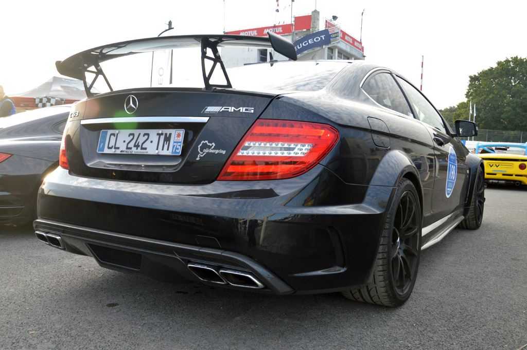 Cela évolue toute la journée au niveau du parking club, c'est pourquoi une visite régulière s'y impose, ici, une Ford GT, une Chrysler 300, une Aston Martin DBS ou un bel alignement de CLio V6 jaune Sirius.