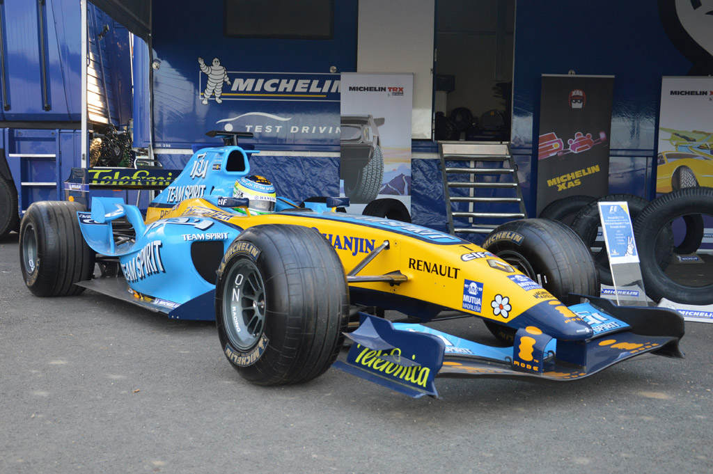 Dès l'entrée, un petit stand présente deux championnes du monde à leur époque dans leur catégorie : Citroën Xsara en WRC et Renault RS25 en F1.