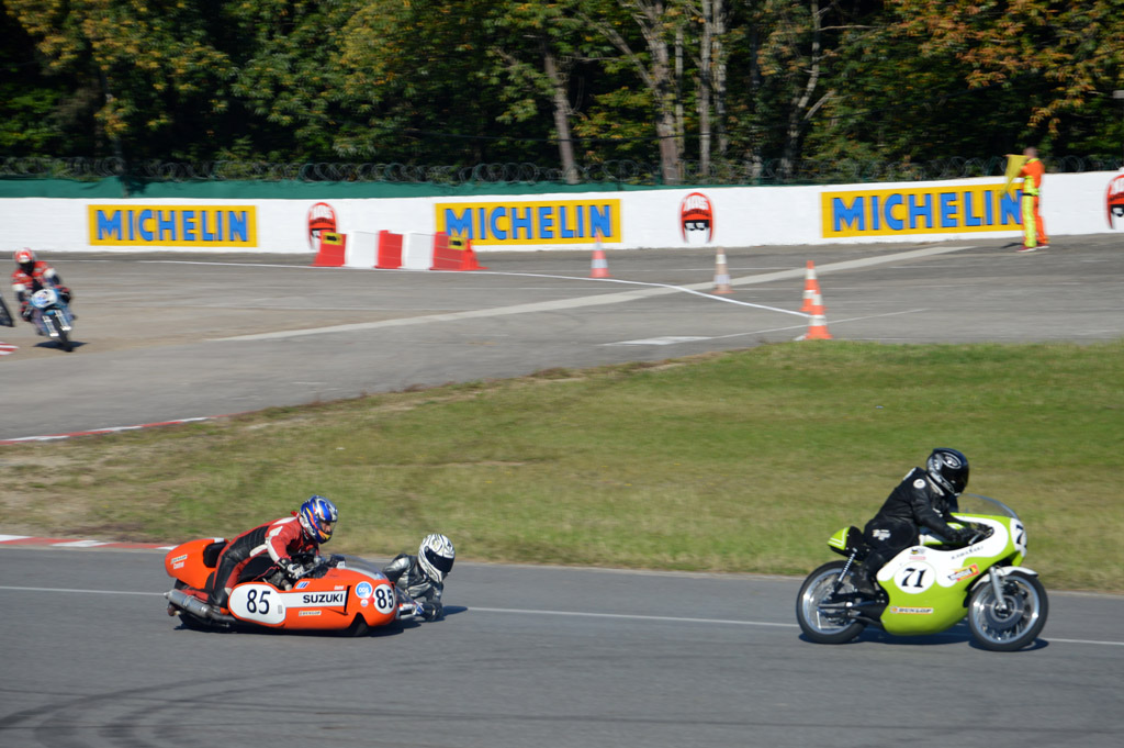 L'intérêt de l'évènement est d'également de pouvoir voir la plupart des machines tourner sur l'anneau historique. Ici, les plateaux monoplaces, puis motos.