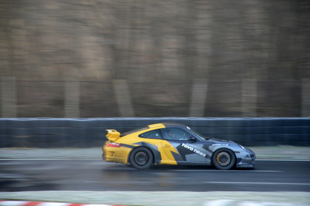 Viendra ensuite mon tour de prendre le volant. Premier constat : on est assis très bas, ça change de la Clio RS ! On ajuste le siège, clé de contact à gauche comme de tradition sur les Porsche, on démarre, et c'est parti. Les commandes sont très fermes, aussi bien la direction que les pédales, mais surtout la transmission, manuelle sur le modèle essayé. La bruit est très métallique et monte très sympatiquement dans les tours : et ça pousse ! L'expérience n'aura duré que deux tours, mais quel plaisir !