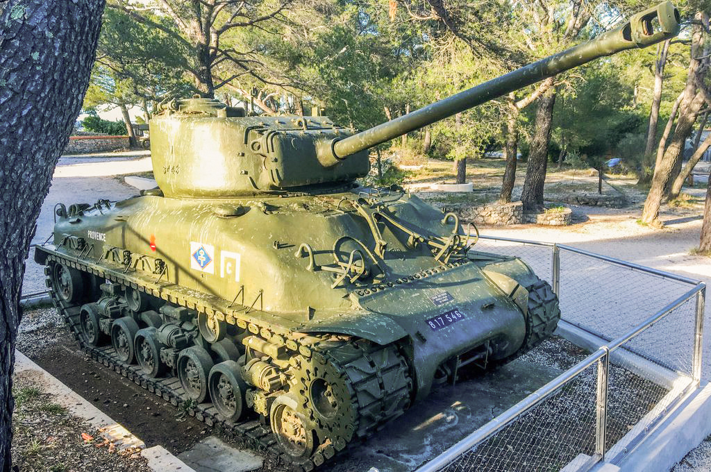 En escapade à Toulon, je suis tombé devant le mémorial du Débarquement en Provence en 1944 sur ce Sherman M4A1 HVSS et ce canon de 90mm antiaérien. Sympatiques rencontres !
