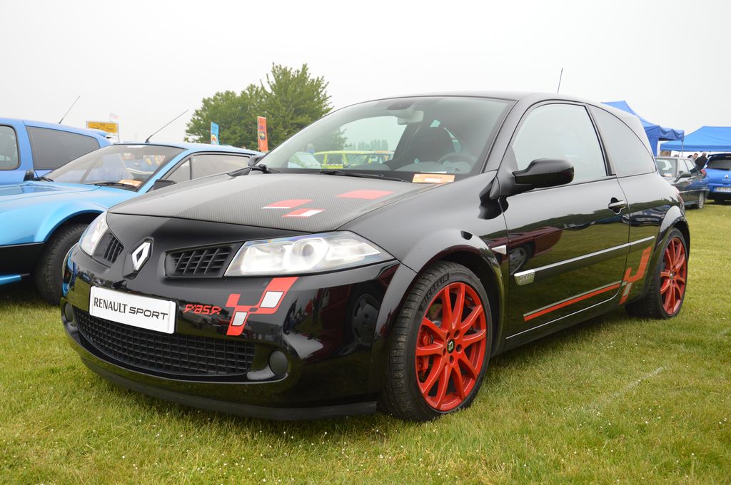 Je vais faire ensuite un tour du côté du parking club. Alors que je m'attardais sur cette toute denrière Mégane RS, Jean Ragnotti passa juste à côté de moi alors qu'il venait de garer son Captur une voiture au-dessus ! Autre produits Renault Sport : Spider, Clio V6 ou Mégane R26R.