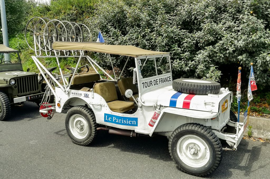 Nouveauté cette année, je m'y rends sur le weekend avec l'Univem, et je m'occupe de convoyer une Jeep Willys aux couleurs du Tour de France. C'est la première fois que j'en conduisais une, et après quelques minutes d'adaptation, c'est un véhicule fantastique ! Les véhicules sont donc partis par la route et ont fait les 70 km entre Satory et l'aérodrome par leurs propres moyens.