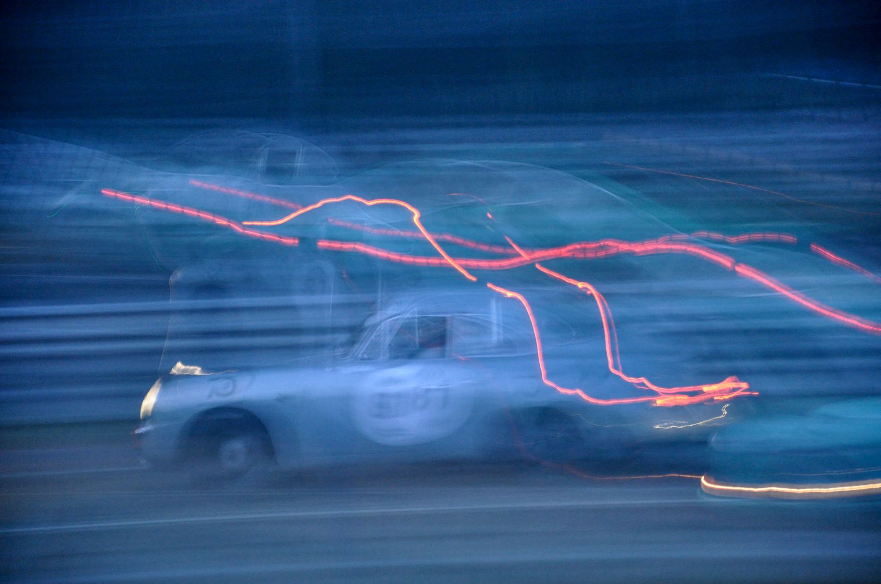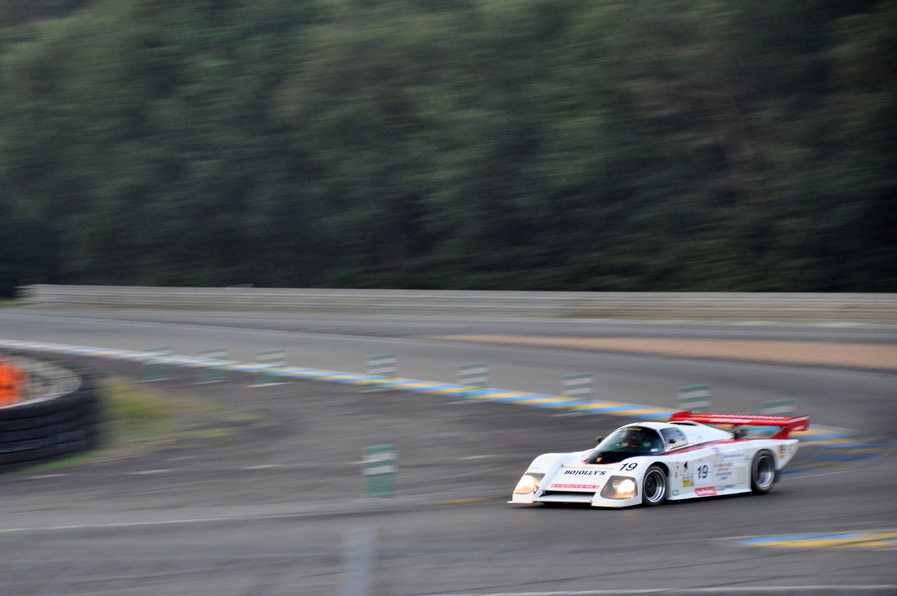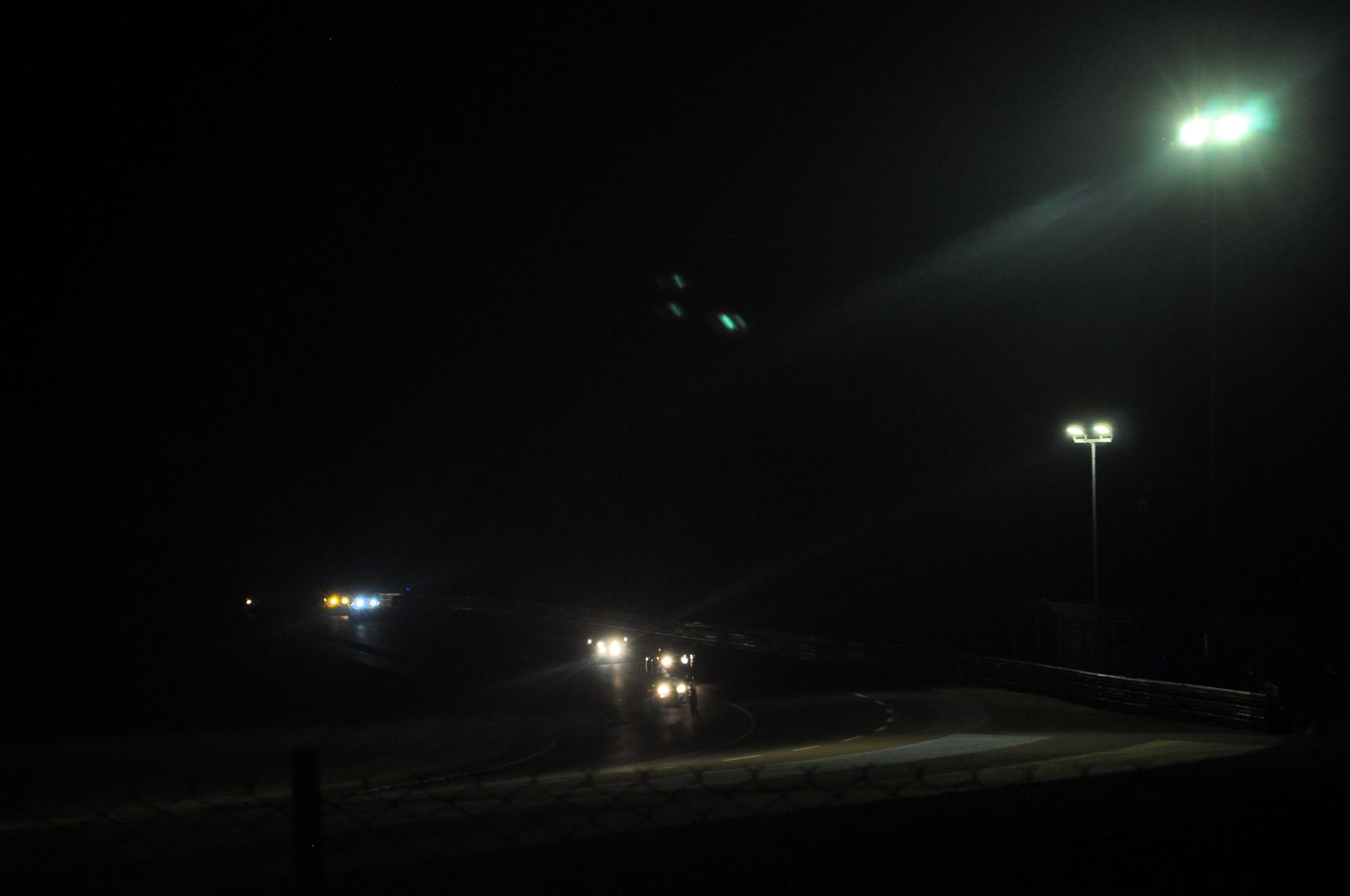 Avant que la nuit ne tombe, nous reprenons la voiture et allons du côté du virage de Mulsanne, à la fin de la ligne droite des Hunaudières pour regarder passer les Groupe C.