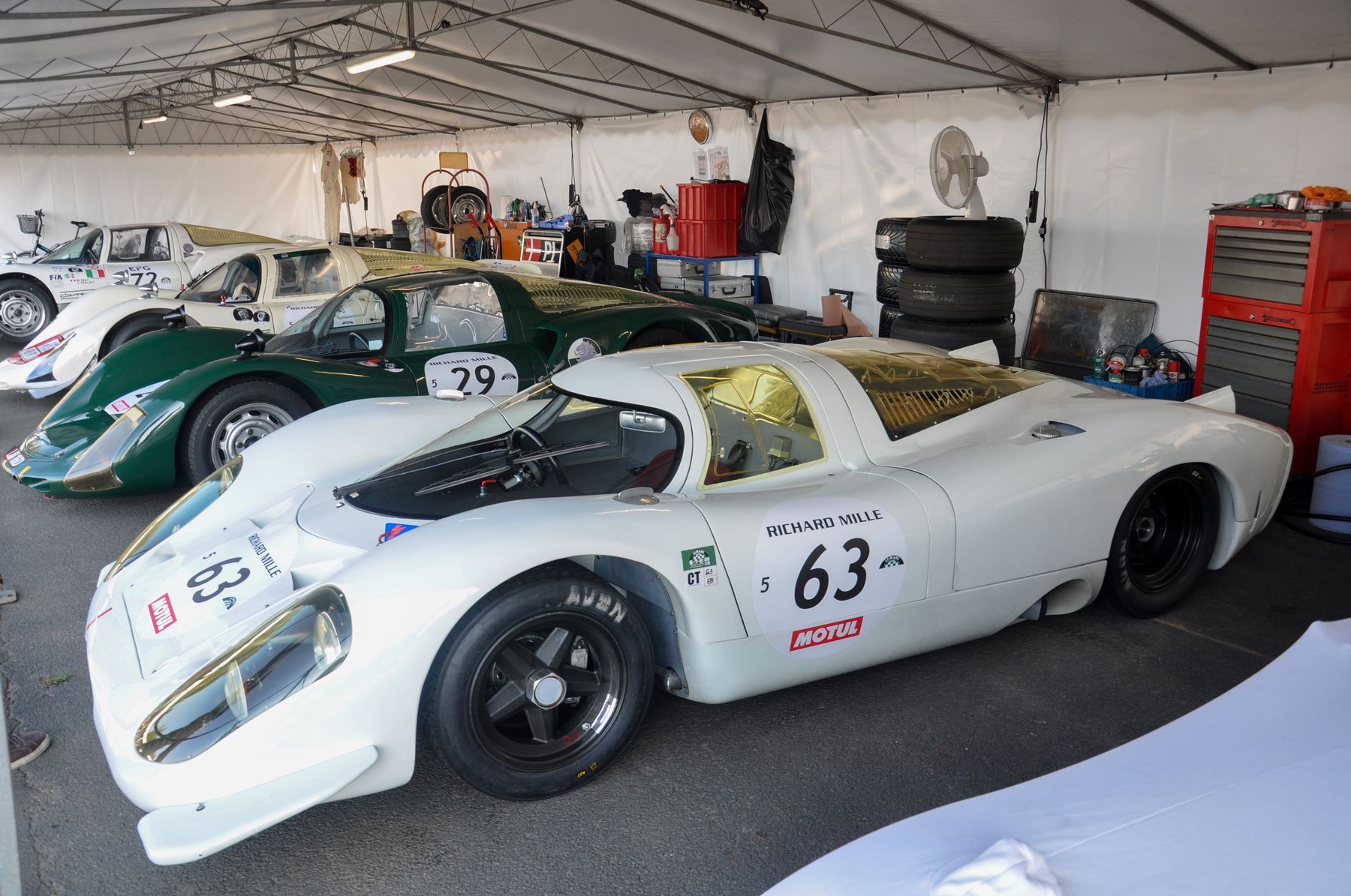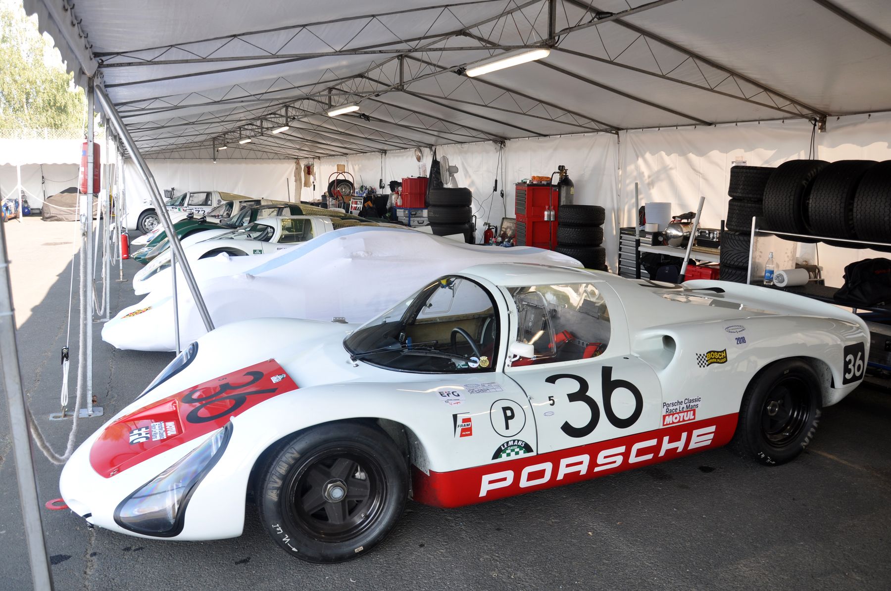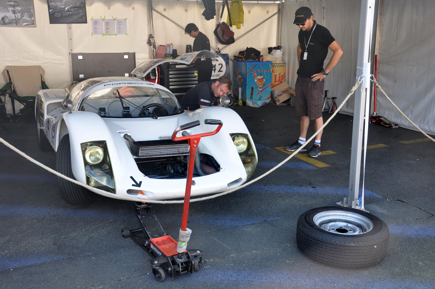 Le samedi matin, on en profite de refaire les paddocks tant qu'il n'y a pas grand monde. Ici, plateau 5, avec les Porsche 917, 908, Alpine A220, Lola T70, Corvette C3,...