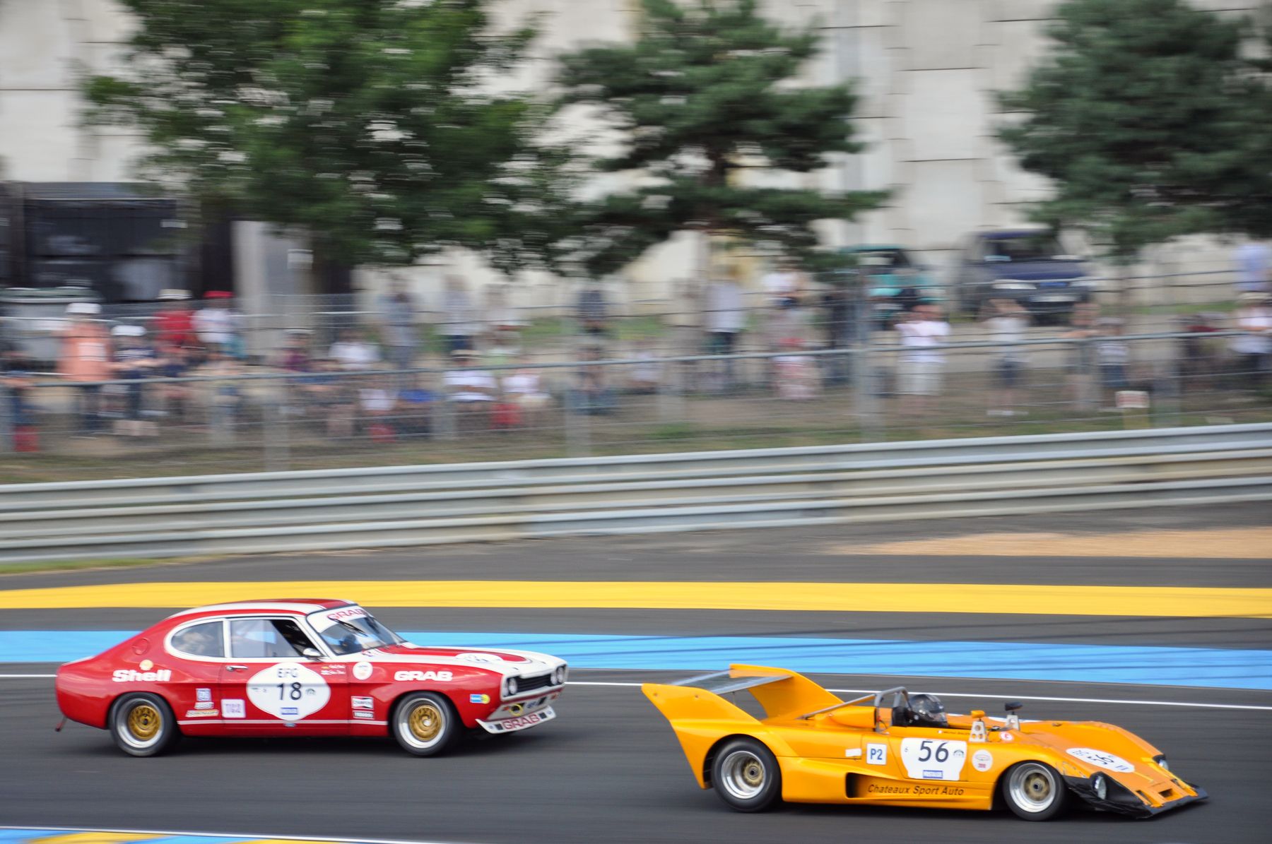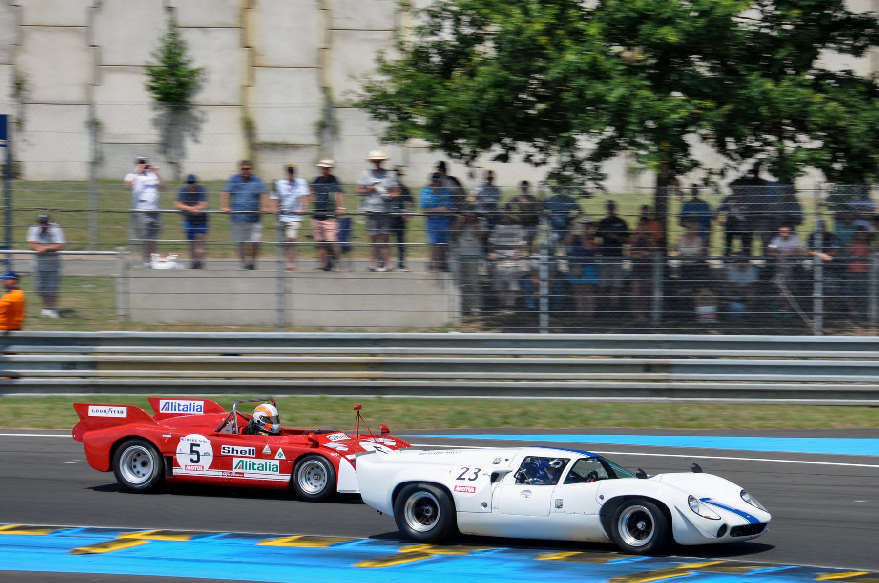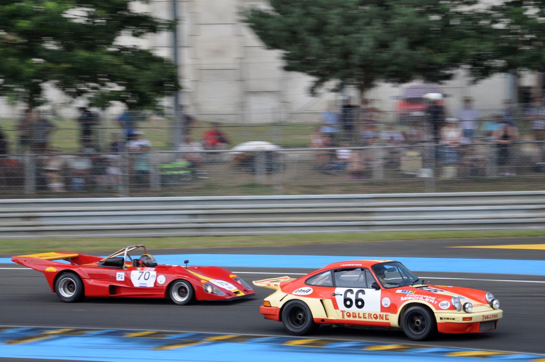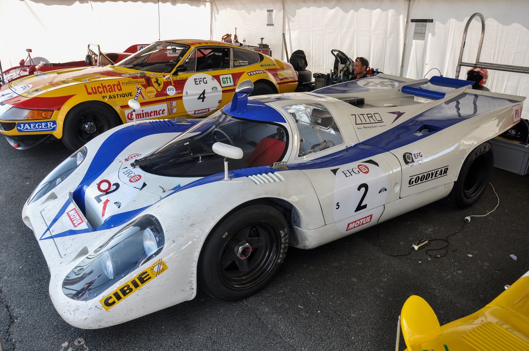 Le samedi matin, on en profite de refaire les paddocks tant qu'il n'y a pas grand monde. Ici, plateau 5, avec les Porsche 917, 908, Alpine A220, Lola T70, Corvette C3,...
