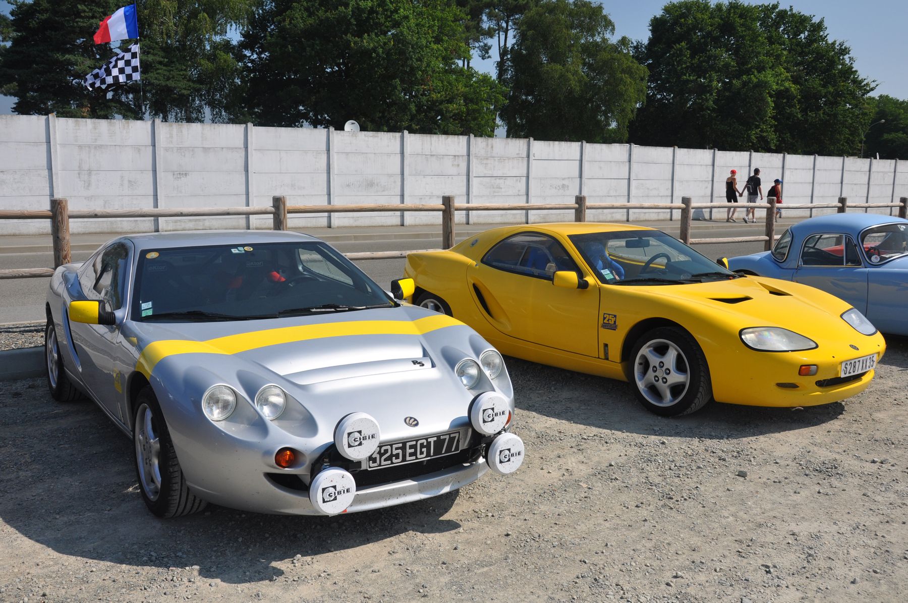 On avance petit à petit avec pour destination en tête Tertre Rouge, en passant devant divers clubs d'anciennes.