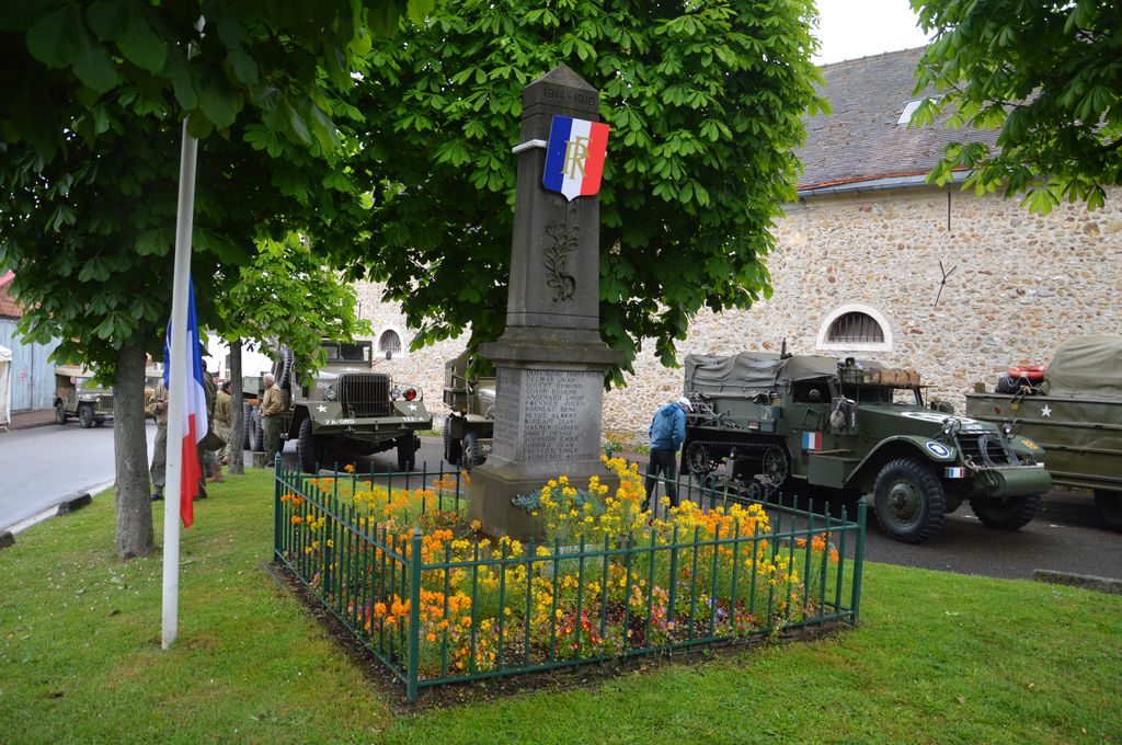 Le matin aux Loges-en-Josas, les véhicules entourent le monument aux morts. En fin de matinée, une cérémonie s'y tiendra. Quelques gouttes de pluie n'ont pas empêchés de nombreux spectateurs de venir.