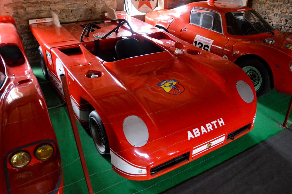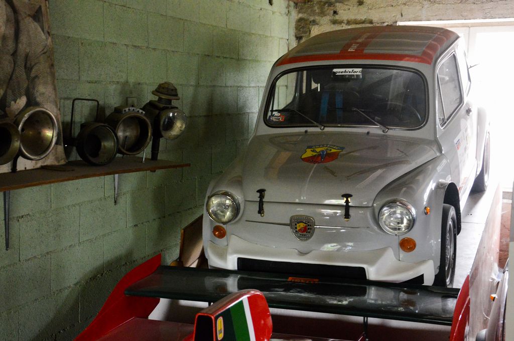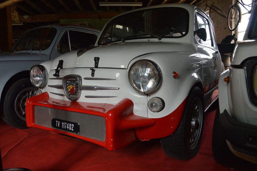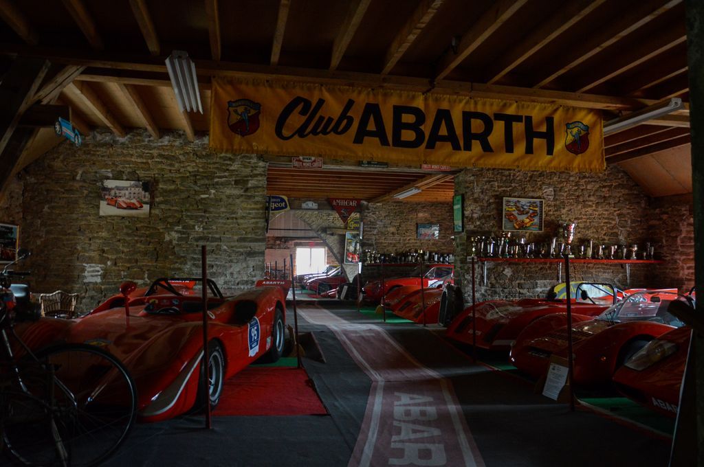 Dans un bâtiment adjacent, à l'étage, on trouve sans doute la plus grande collection d'Abarth au monde : le propriétaire a été quelques années pilote de course sur ces voitures. Pour faire des photos de n'est les meilleures conditions, il fait sombre, avec des contres jours énormes, et les voitures sont les unes sur les autres. Mais rien qui ne puisse réellement gâcher le plaisir !