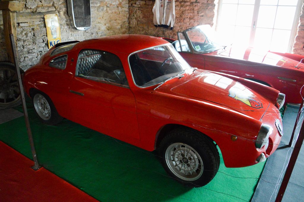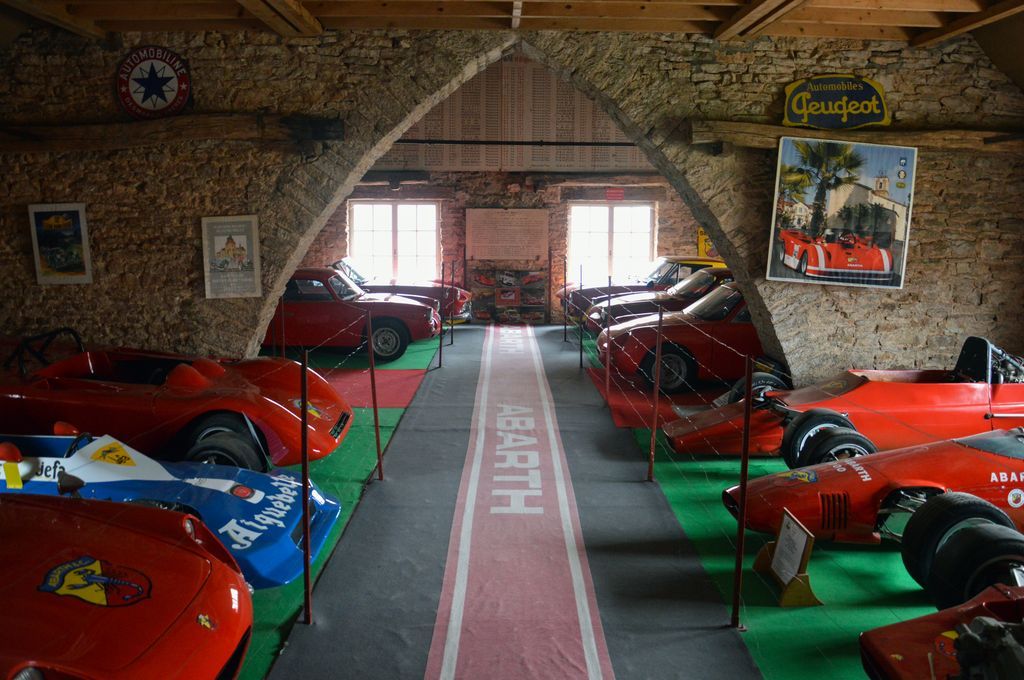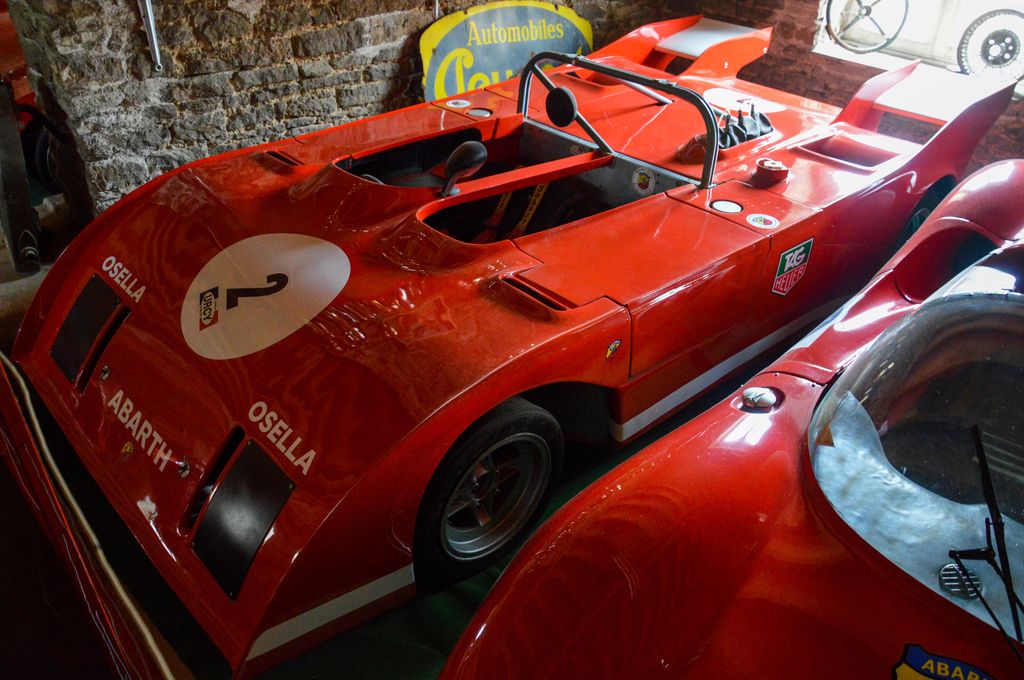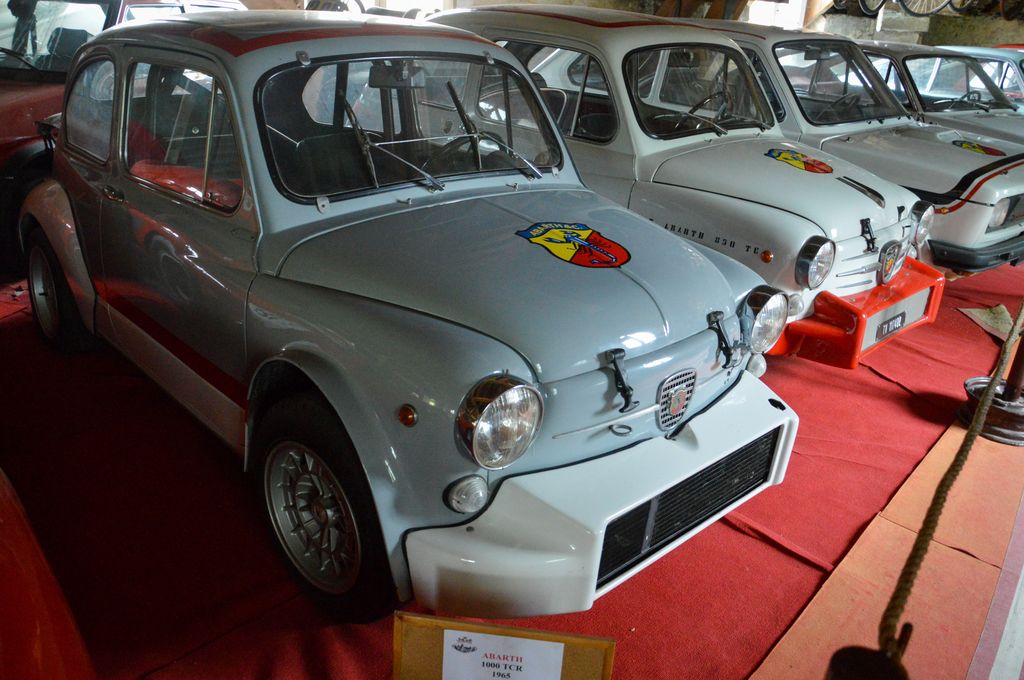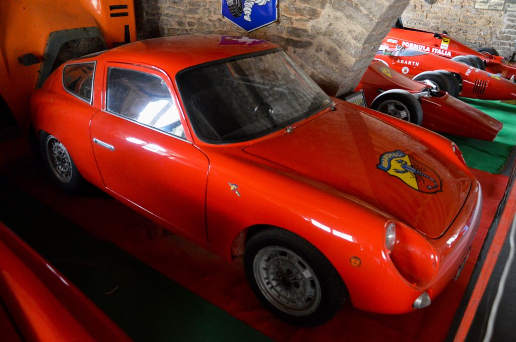 Dans un bâtiment adjacent, à l'étage, on trouve sans doute la plus grande collection d'Abarth au monde : le propriétaire a été quelques années pilote de course sur ces voitures. Pour faire des photos de n'est les meilleures conditions, il fait sombre, avec des contres jours énormes, et les voitures sont les unes sur les autres. Mais rien qui ne puisse réellement gâcher le plaisir !