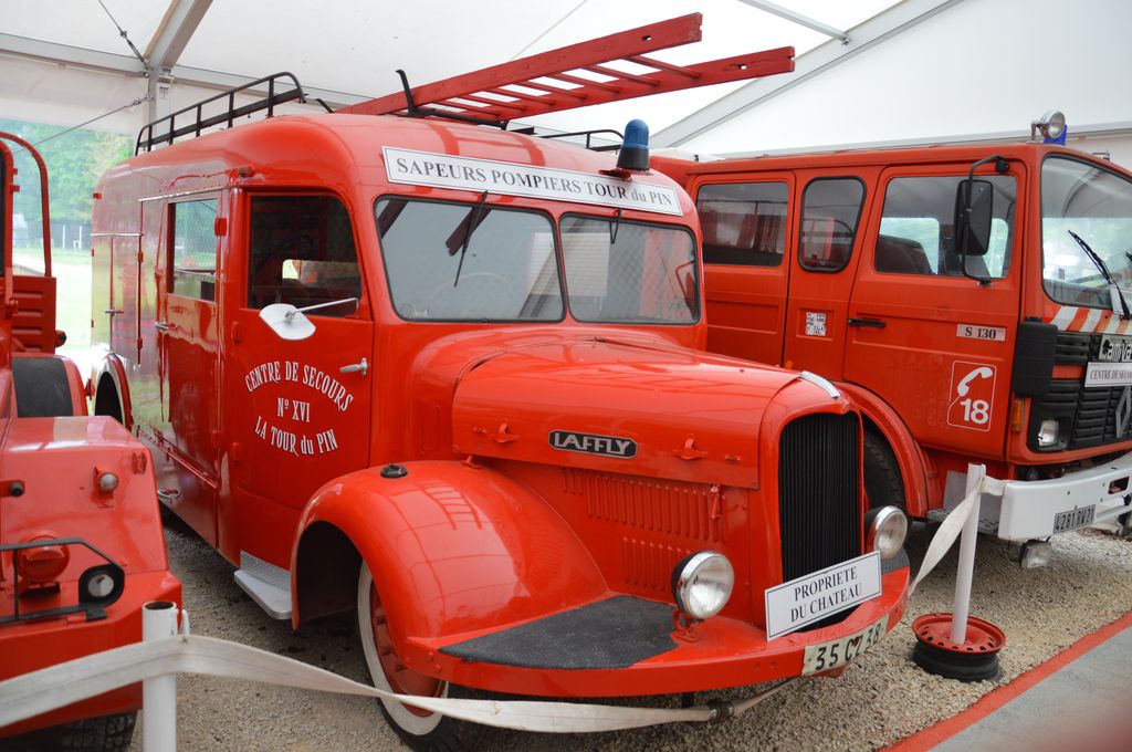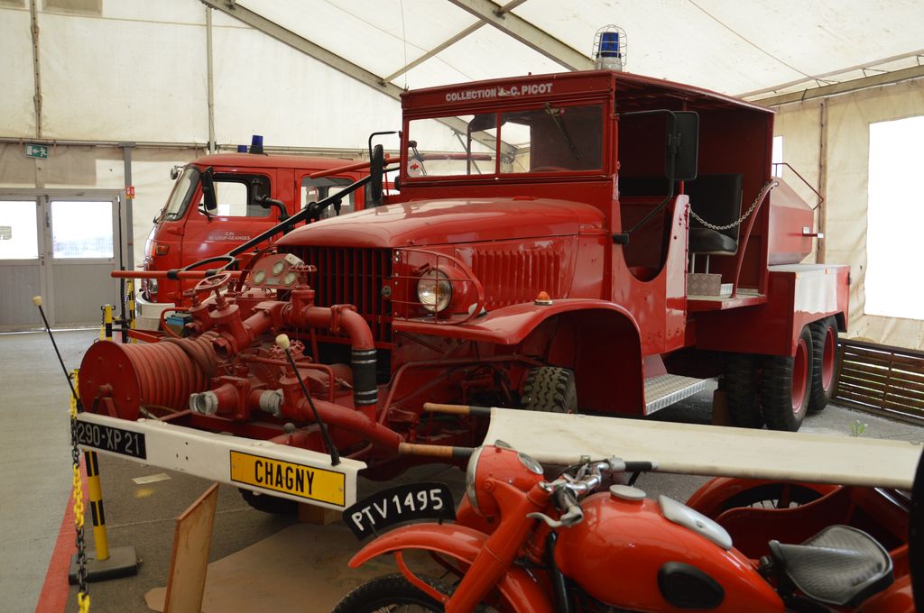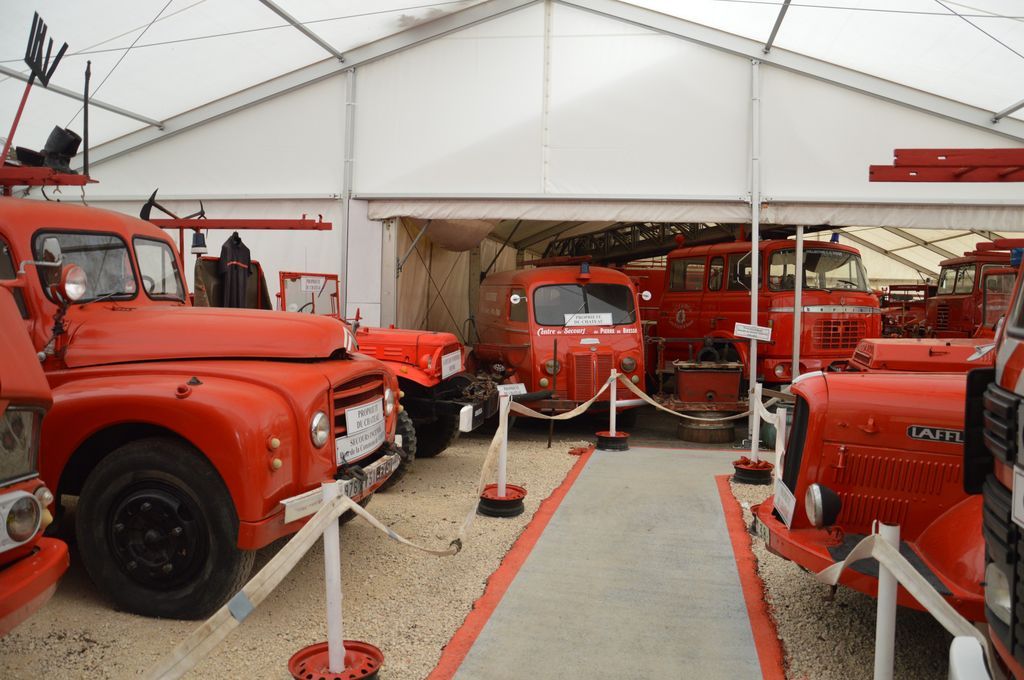 Ensuite, un autre chapiteau abrite une collection de camions de pompier de toutes époques, à commencer par un Renault de 1905 ou ce Simca cargo des années 50.