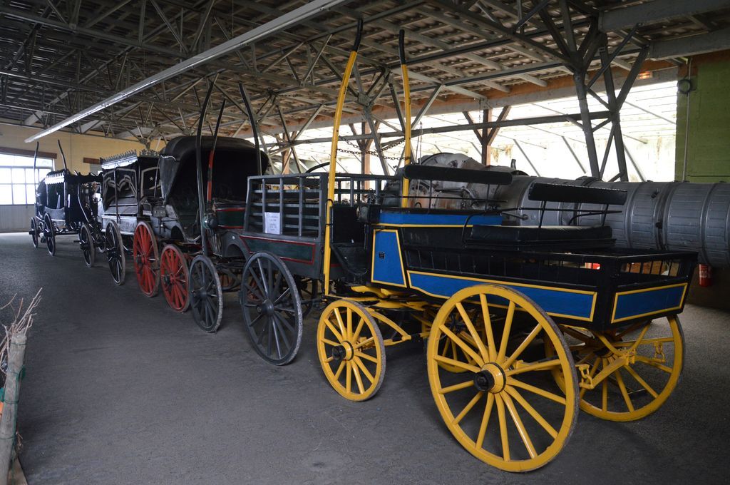 On arrive ensuite à un hangar devant lequel est posée une autre carlingue d'avion. A l'intérieur, de nombreux prototypes de tracteurs viticoles, des calèches et quelques cockpits et moteurs d'avions !