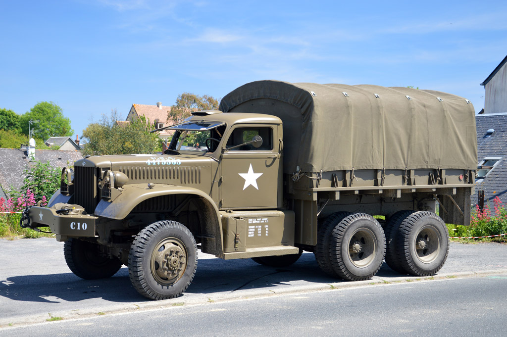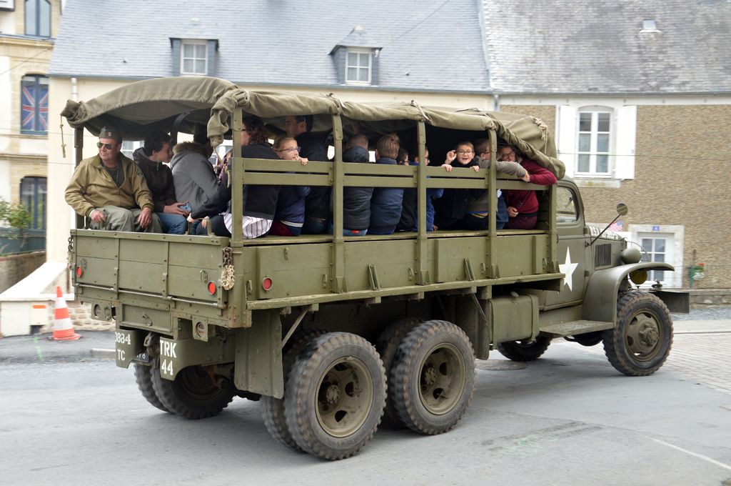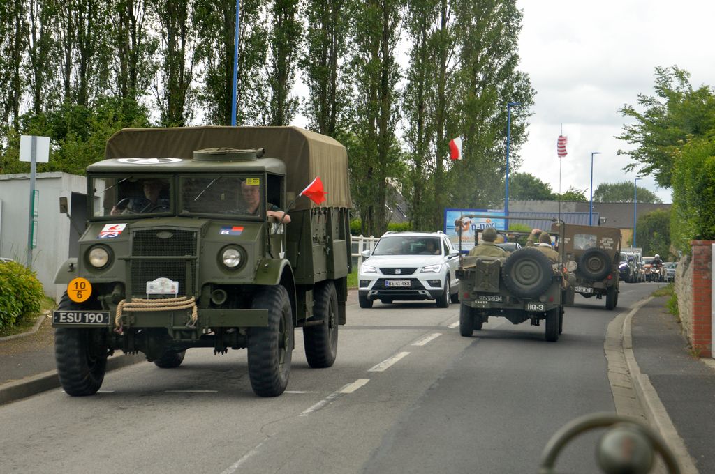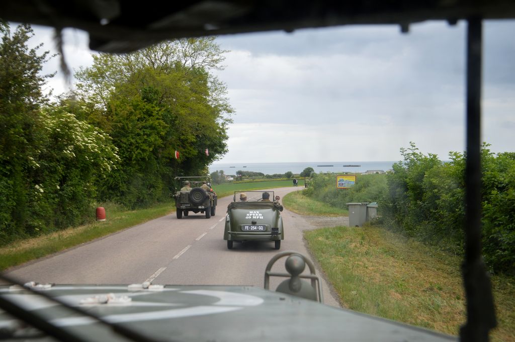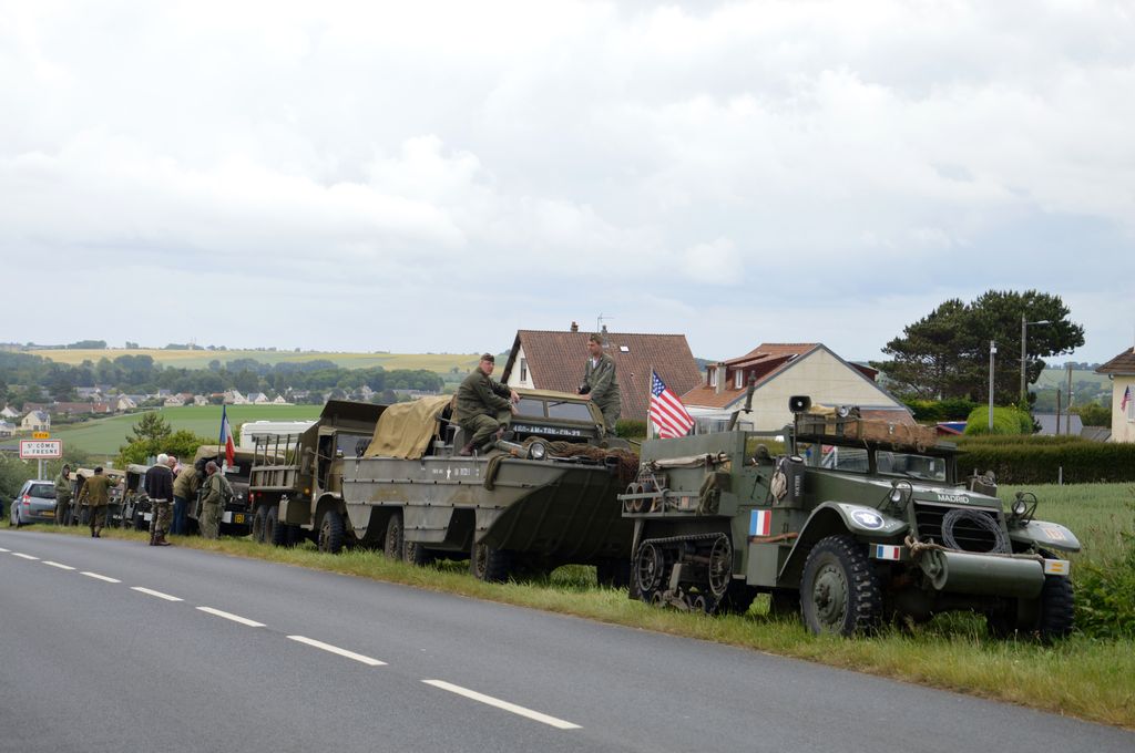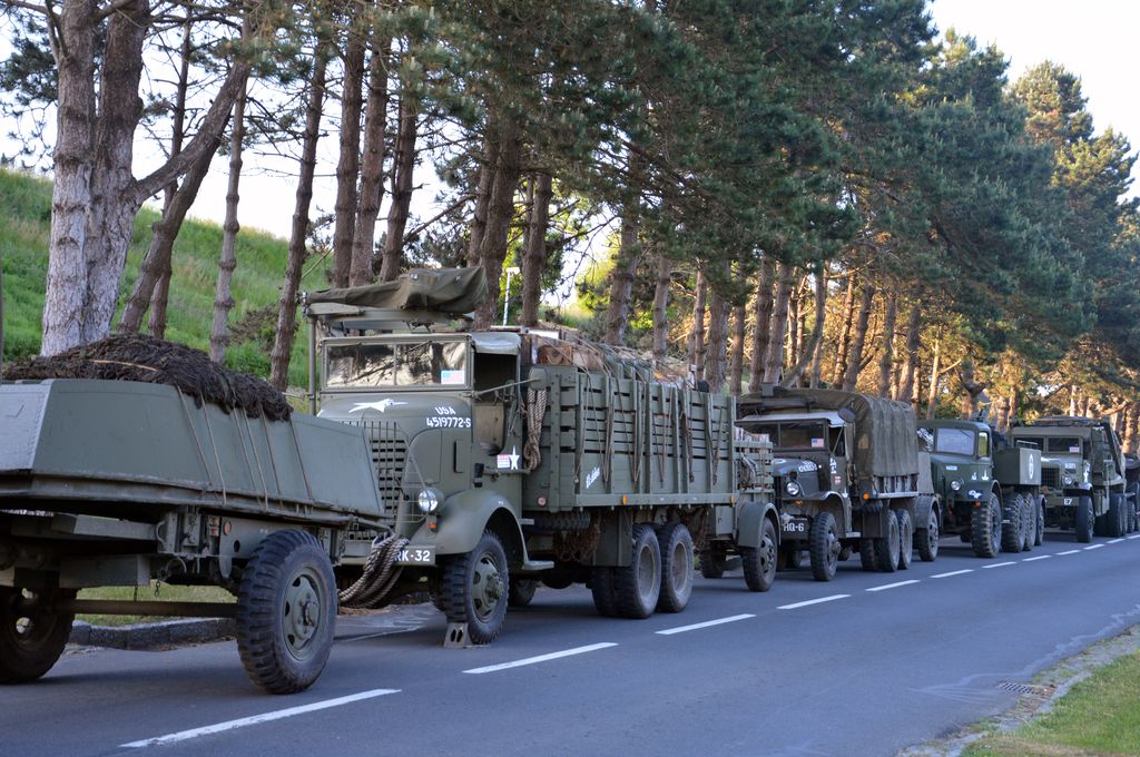 L'étape suivante nous conduira à la batterie de Longues-sur-Mer. Quelques véhicules croisés en route : GMC AFKWX 353, AEC Matador, GMC CCKW aux couleurs du Bomb Dismantle Service (service de déminage), Humvee, GMC CCKW 352 avec un jumelage à l'avant ou encore Ford Canada F60.