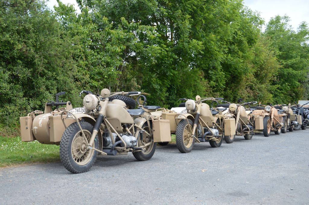 Sur place, un petit convoi allemand composé de plusieurs motos, Kübelwagen et Schwimmwagen. A voir également cette Ford GPA.