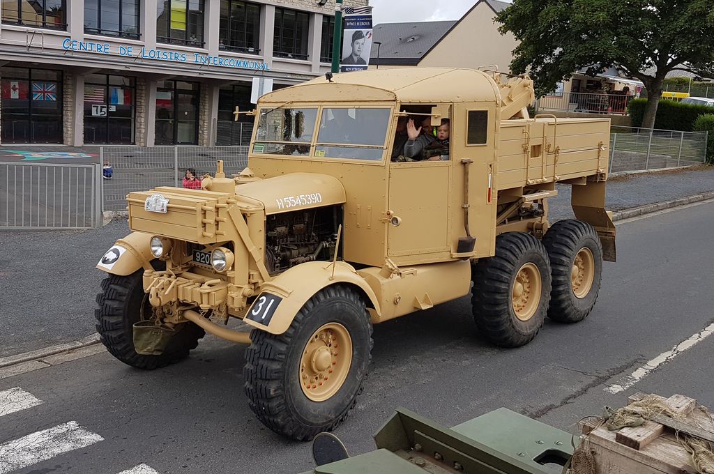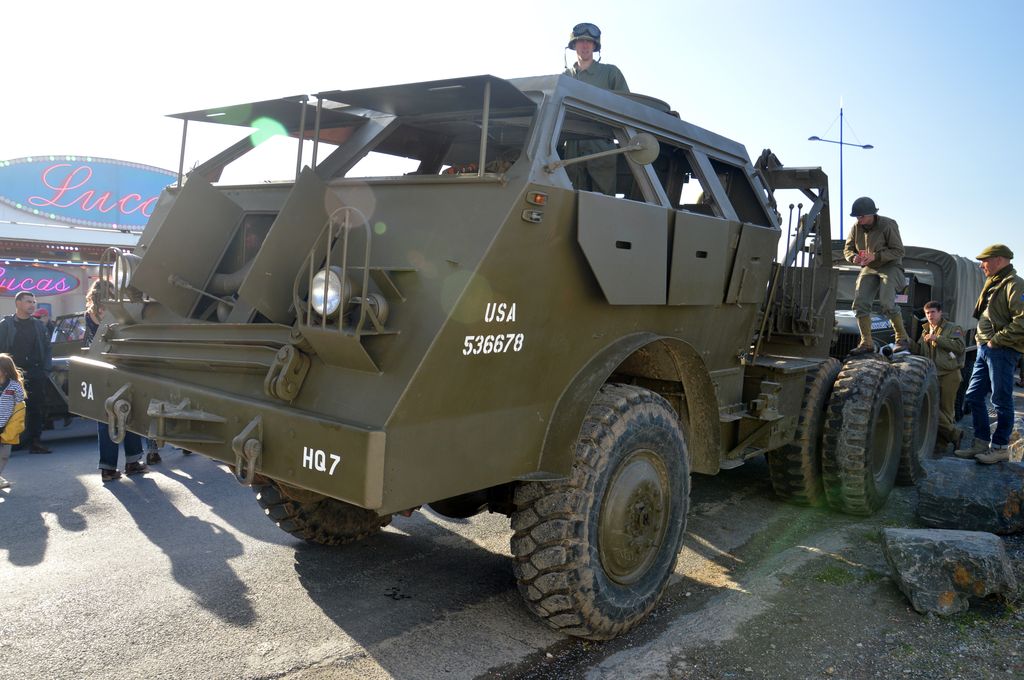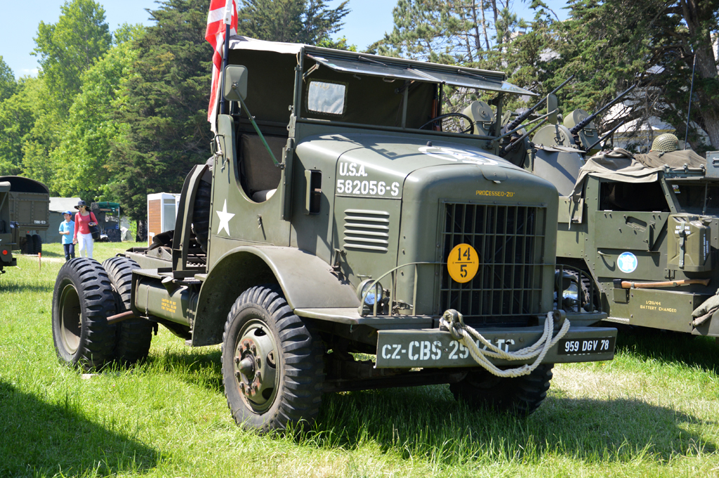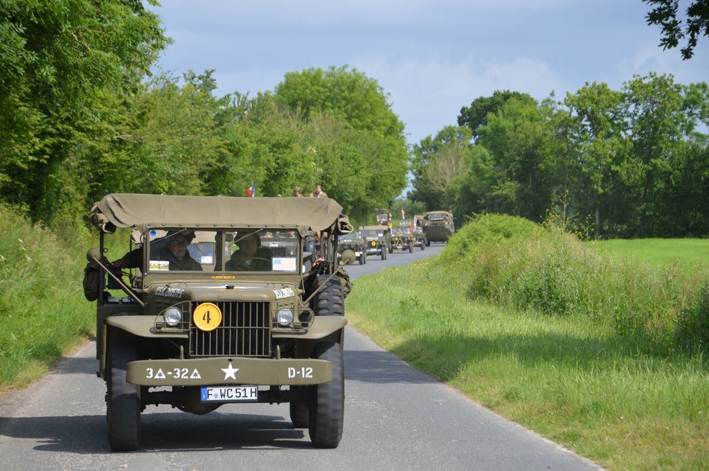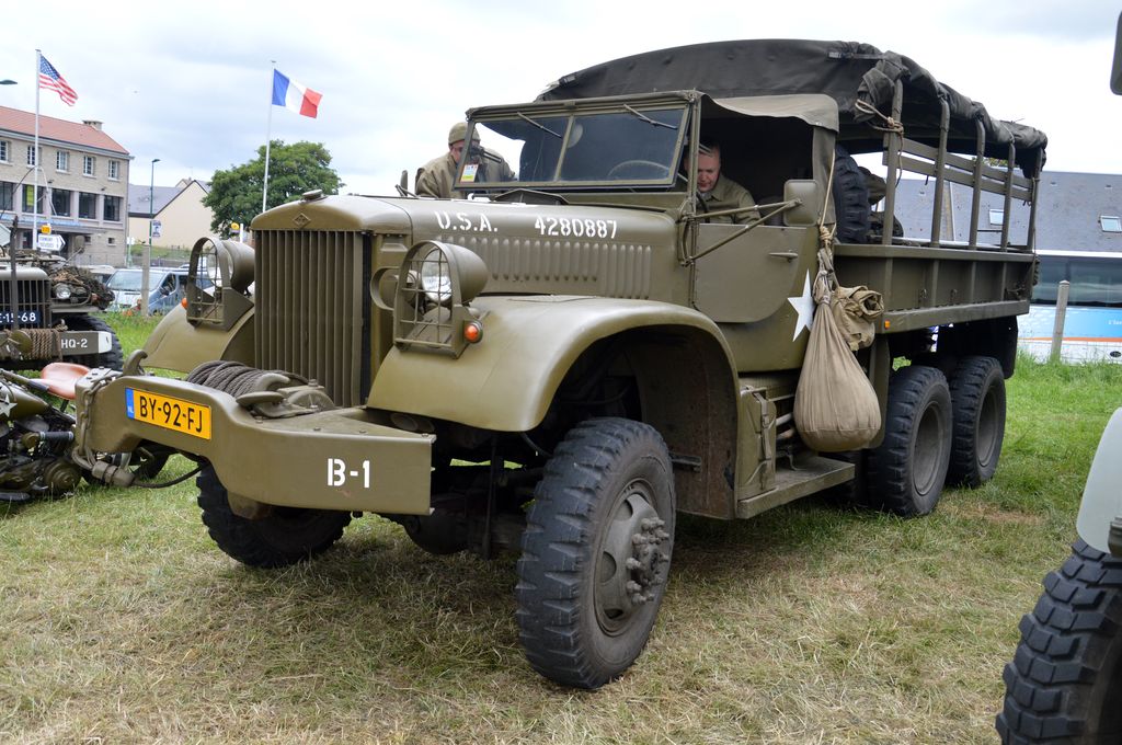 En fin d'après-midi, direction Grandcamp-Maisy où un grand défilé est prévu à partir de 20h30 en direction d'Isigny-sur-Mer. Nous rejoignons les véhicules avant le départ. Beaucoup viennent du camp Geronimo, mais il y en a plusieurs que nous n'avions pas encore vu : M26 Pacific (!), GMC CCKW équipé d'un 40mm Bofors, le Brockway B666 déjà vu avec son portique déplié, une DOdge Staff Car, Dodge WC55, Dodge WC64KD, La Salle ambulance, ou encore cette drôle de conversion de Studebaker US6 en 4x4.