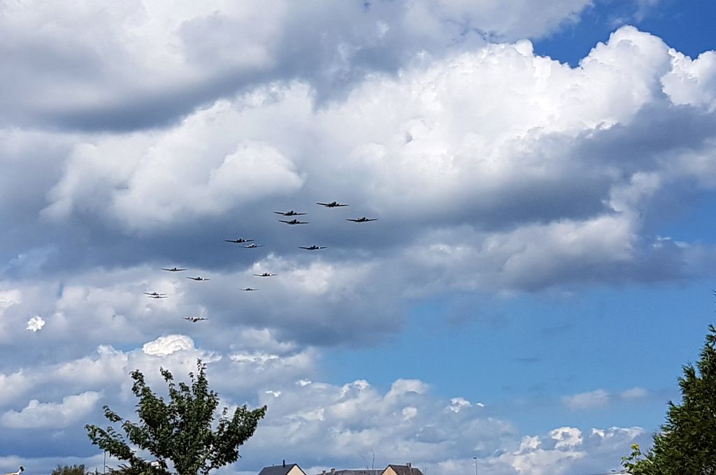 Dans l'après-midi, un concert était donné sur le camp par les History Swingers. Nous avons également eu la chance de voir voler le convoi de Dakota au-dessus de nos têtes : pas moins de treize C-47 volaient ensemble ! Quelques minutes après, c'est la patrouille de France qui passait !